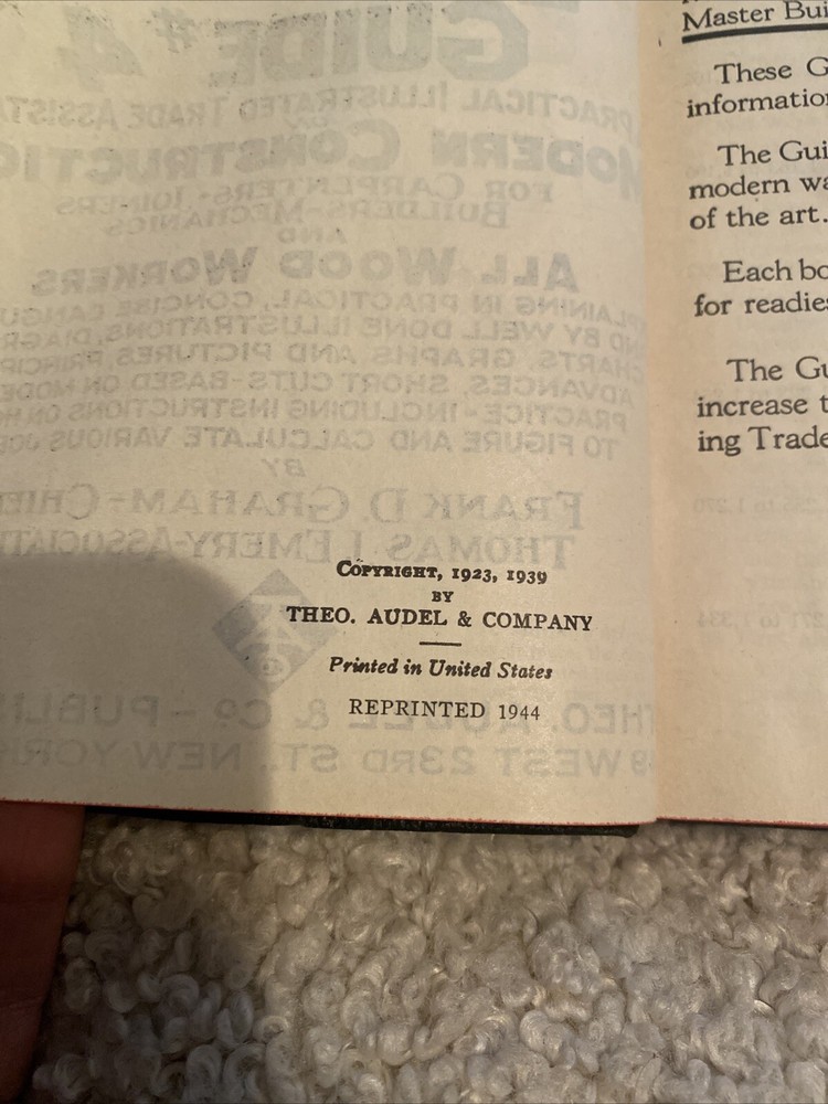 Audels Carpenters and Builders Guide # 4 - 1944 Reprint Vintage Book. Shipped with USPS Media Mail....