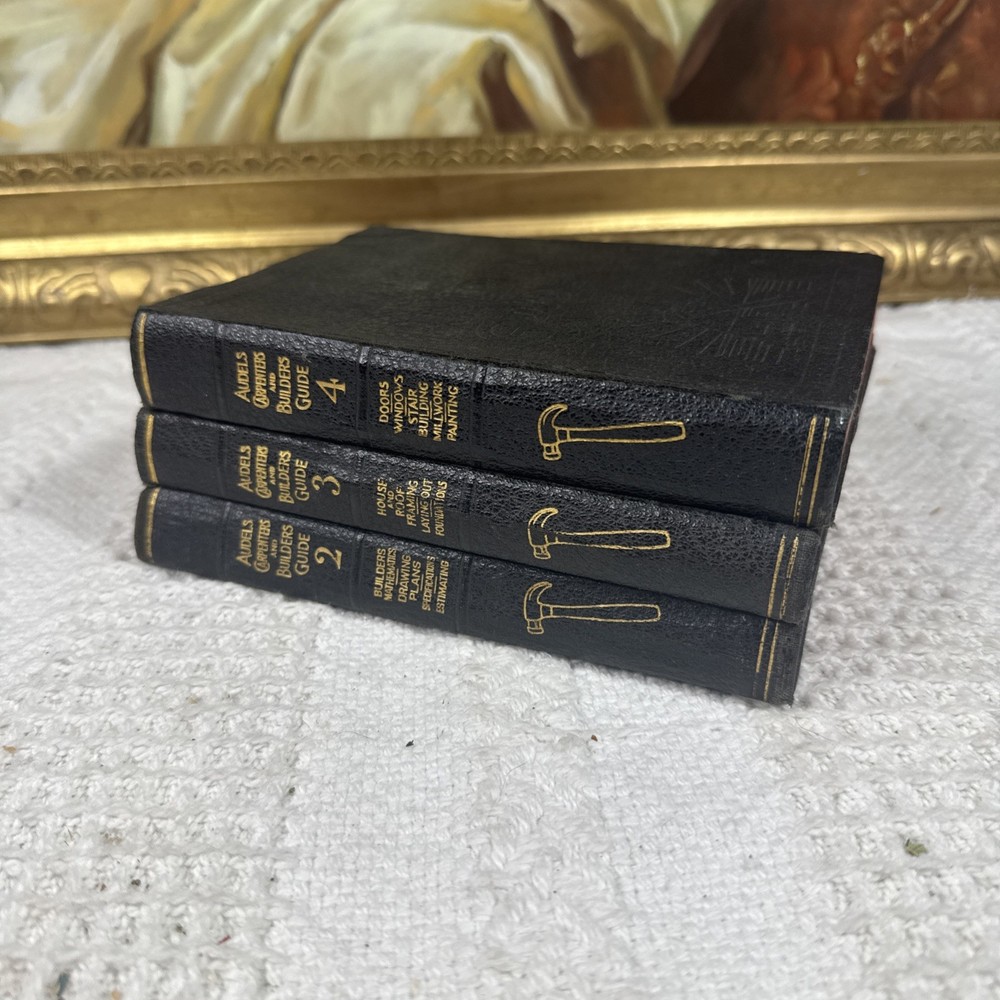 Audels Carpenters and Builders Guide Books 2, 3, 4 Leather Book Lot Reprint 1937...
