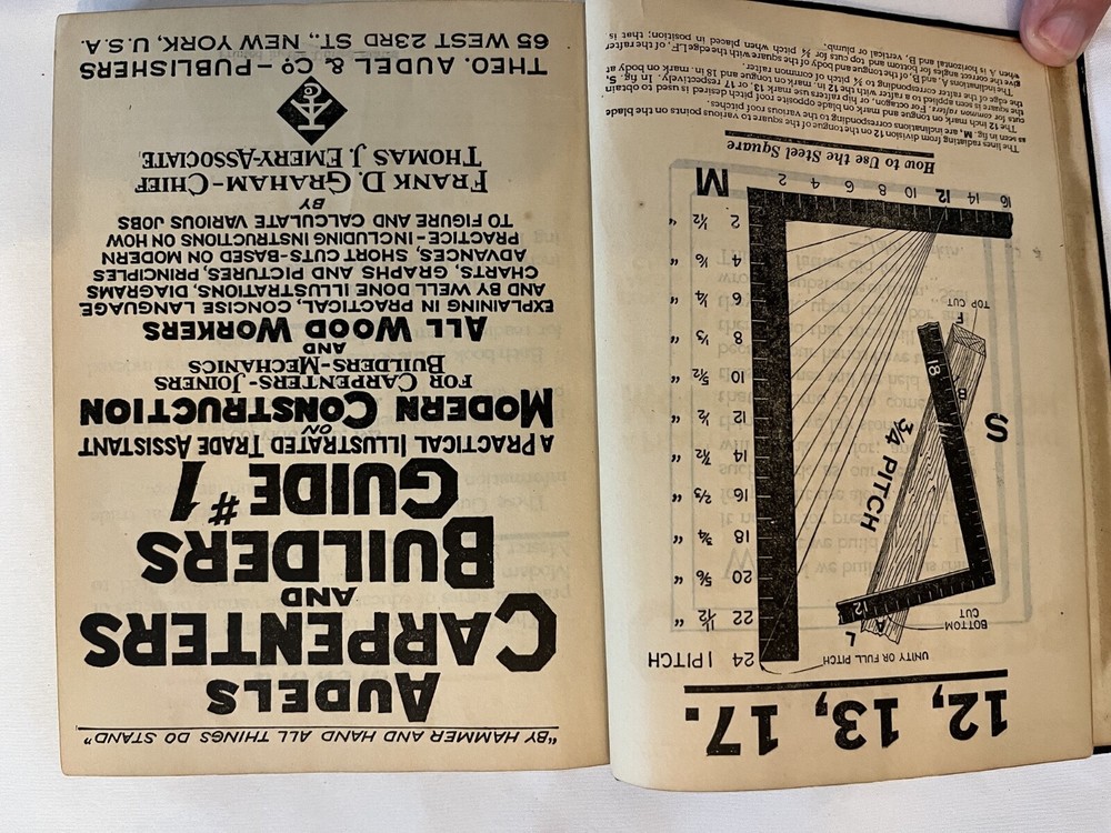 The "Audel's Carpenters and Builders Guide Books Set," is a comprehensive collection from 1923 comprising of Volumes 1-4. Authored by Frank D. Graham, this set is a treasure trove for both historians and craftsmen, offering a deep dive into reference materials with a language-agnostic approach through detailed illustrations. Proudly published in the United States and bound in refined leather, these original guidebooks are a testament to the era's craftsmanship. Each book is a celebration of the trades, untouched by signatures or personalization, ensuring the focus remains on the content—a wealth of knowledge for anyone interested in the subject matter. No returns. Shipping to U.S. addresses only. Thanks!