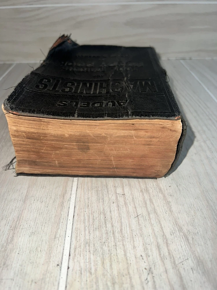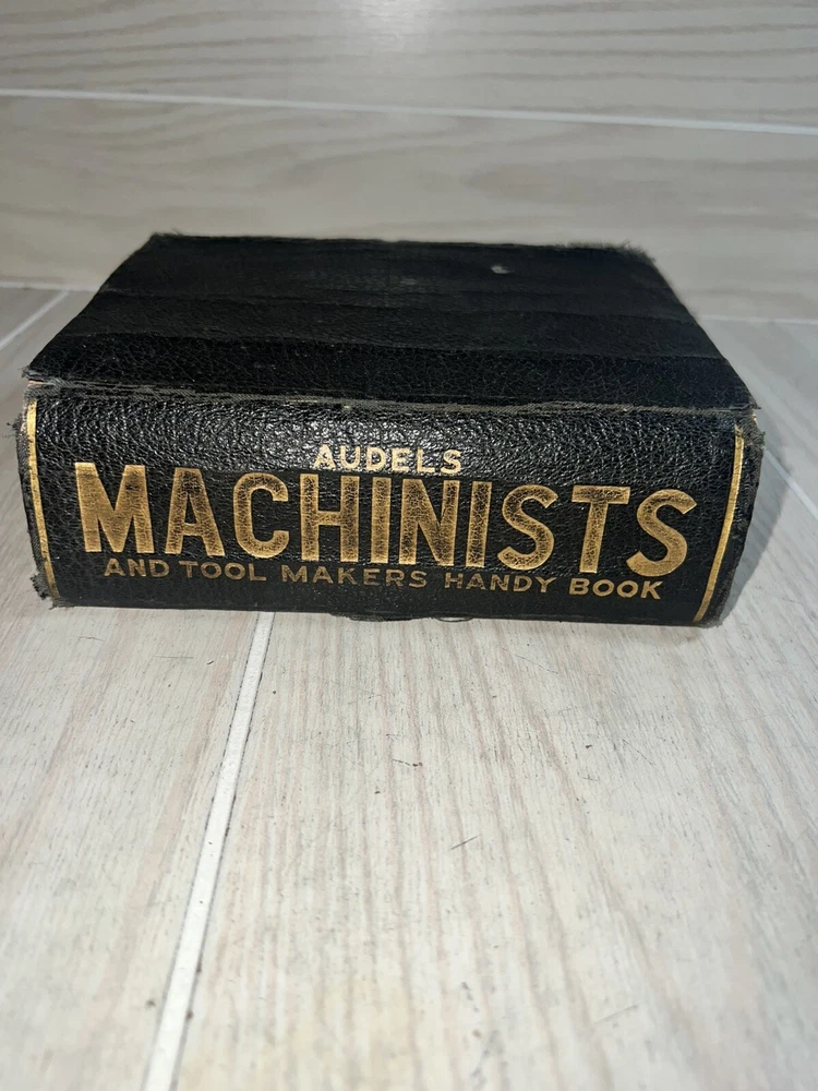 This Audels Machinists and Tool Makers Handy Book by Frank D Graham is a valuable addition to any collection. Published in 1942 by Theo. Audel & Co. in NEW YORK, this book is a comprehensive reference guide for machinist and tool making. The leather bound book is illustrated and contains special attributes that make it a unique find for collectors. The book is an original printing and written in English. It covers a wide range of topics related to machinist and tool making, making it a must-have for anyone interested in the subject. Book does have wear especially to the cover, it’s ripped and strings are showing. The pages have yellowed due to age. And someone wrote a price on it. Please see pics.