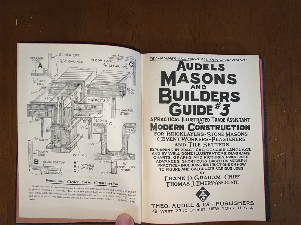 Audels Masons and Builders Guide Volume #3 1945 leather. Some water damage- see pictures for all details