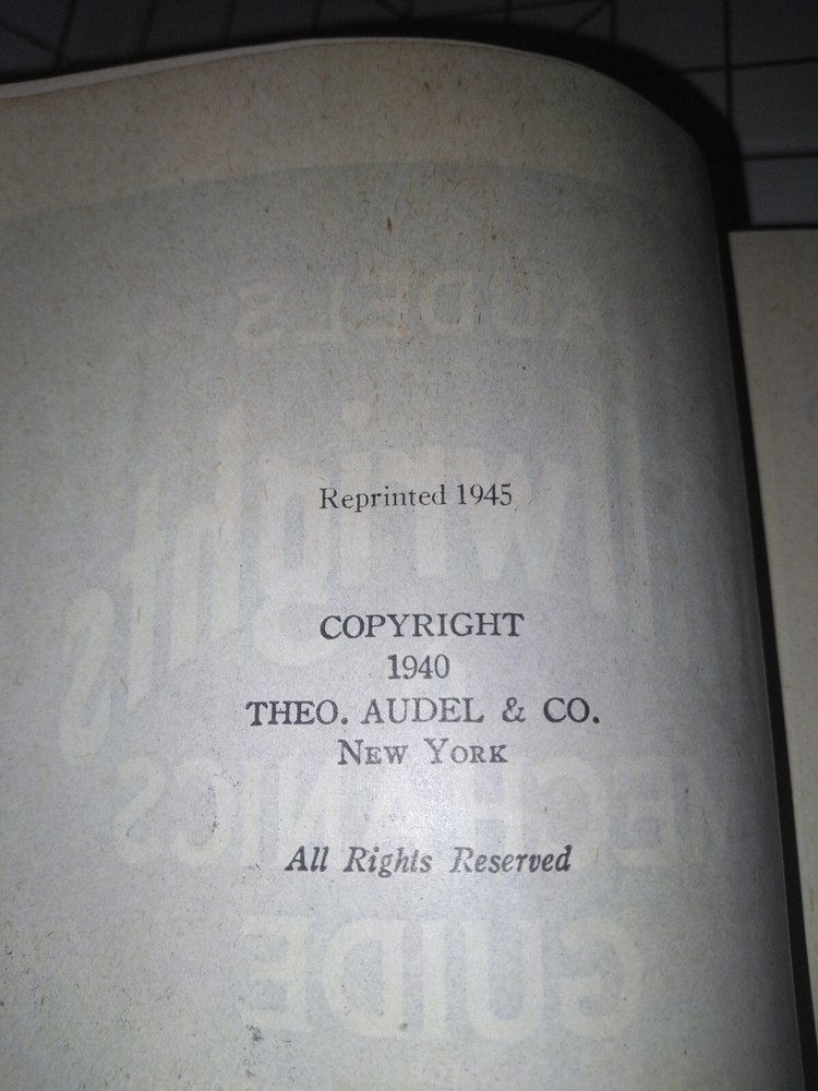 This is an original 1940 leather-bound copy of Audels Millwrights and Mechanics Guide by E.P. Anderson. The book was published by Theo. Audel & Co in New York and is in English. It contains illustrations and is a great addition to any collection of antique and rare books. The book has not been personalized and is in its original condition.