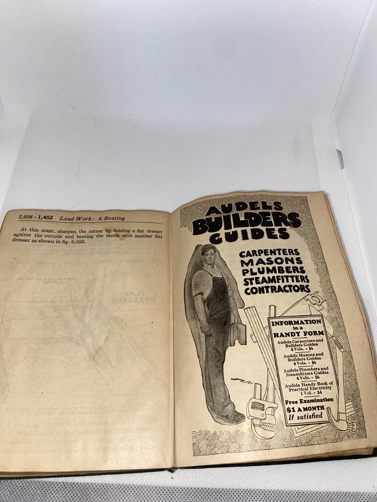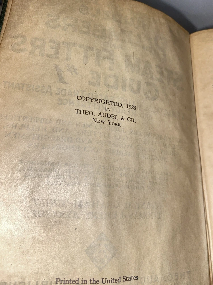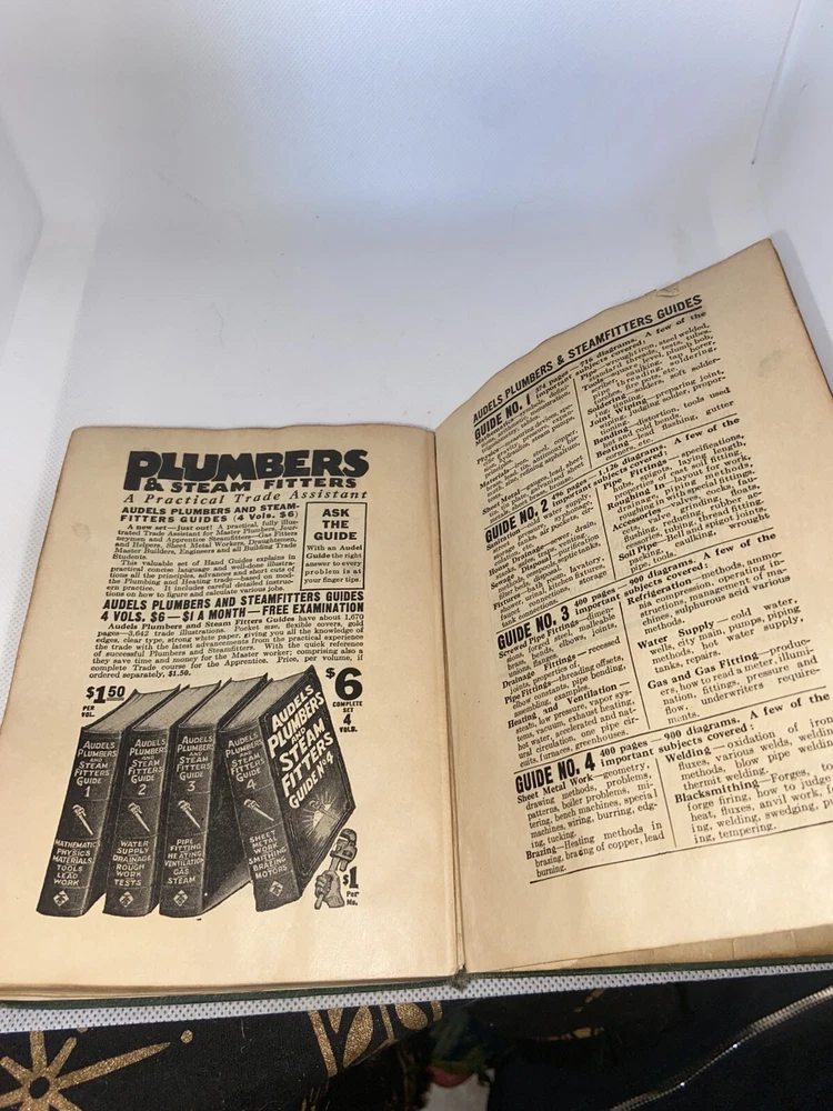 This vintage book, Audels Plumbers & Steam Fitters Guide #1, is a valuable reference for anyone interested in plumbing and steam fitting. Published in 1925 by Theo Audel, this first edition book is written in English and is bound in leather. It is signed by the author and is an original copy. The book covers a variety of topics related to plumbing and steam fitting, making it a comprehensive resource for professionals and DIY enthusiasts alike. Whether you're looking for information on tools, techniques, or materials, this book has got you covered. With its detailed illustrations and step-by-step instructions, it is a must-have for anyone interested in this field. Pag s are yellow but good and legible.