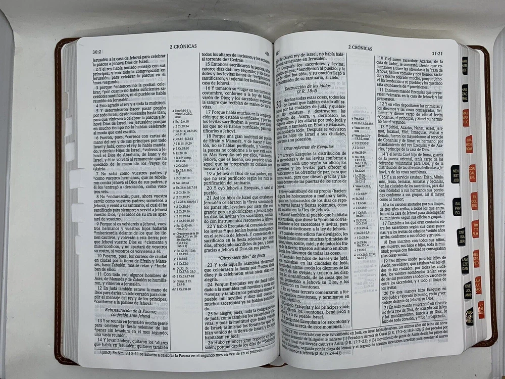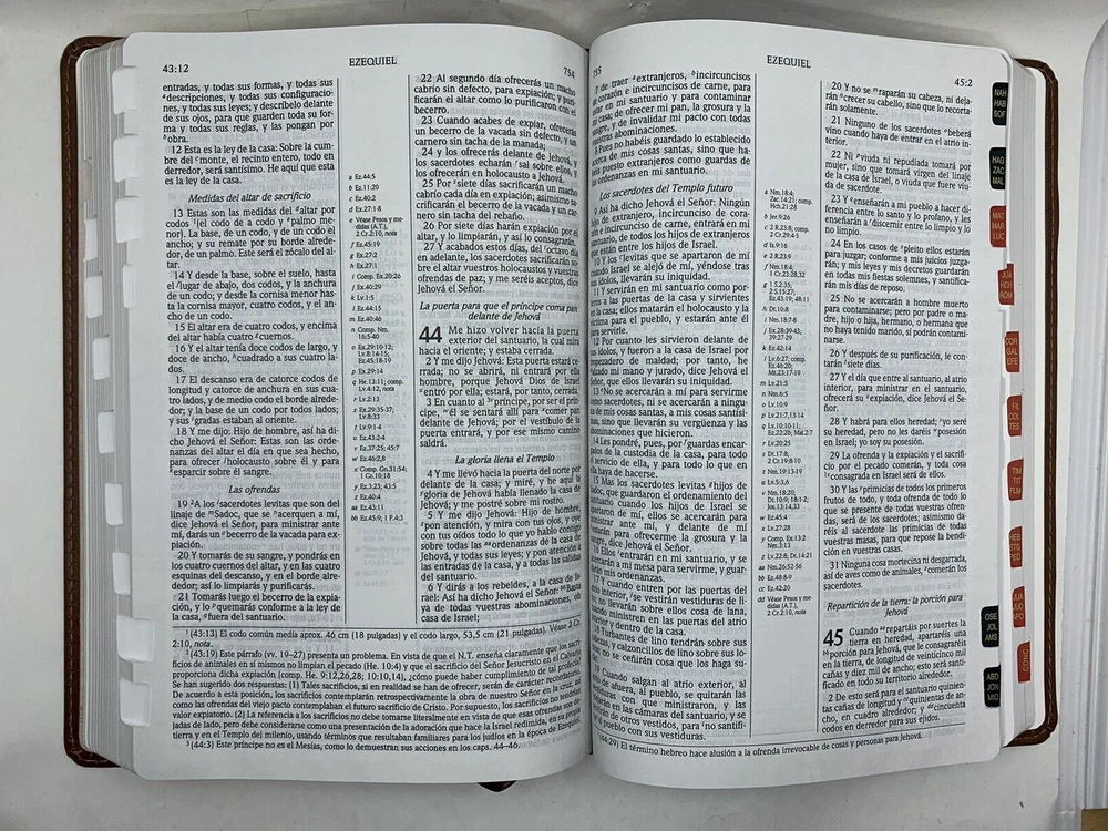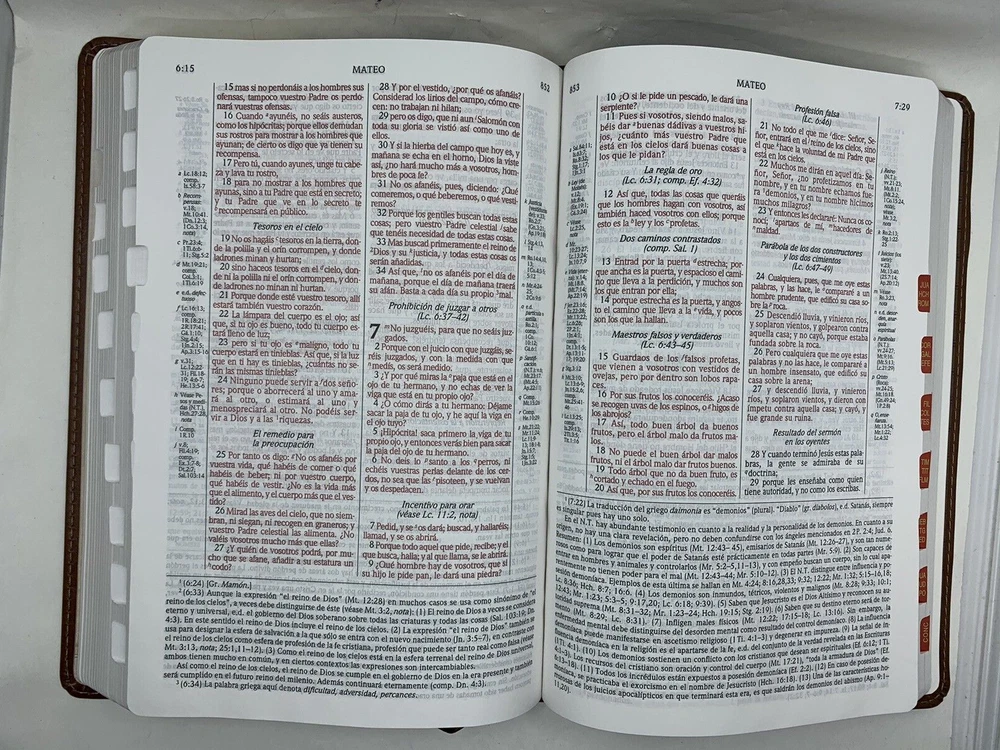 Esta Biblia se basa en el texto tradicional de la RVR 1960 e incluye la interpretación de la teología dispensacional y escatológica que presentó originalmente el teólogo Dr. C.I. Scofield (1843-1921). Características: Introducción a secciones y libros Breve resumen de cada libro de la Biblia Subtítulos en todo el texto bíblico 1,700 notas al pie Referencias en columna central en el Antiguo Testamento Referencias en columnas laterales en el Nuevo Testamento Las palabras de Cristo en rojo Un sistema de referencias temáticas en cadena Índice de notas Guía a citas del Antiguo Testamento en el Nuevo Testamento Breve concordancia Mapas a cuatro colores Página de dedicatoria y sección de registro familiar Caja para regalo3 Format: Imitation Leather Number of Pages: 1344 Vendor: B&H Espanol Publication Date: 2016 Dimensions: 9.19 X 6.25 X 1.00 (inches) ISBN: Availability: In Stock References: Center Column|Side Column Text Color: Red Letter Text Size: 8 Point Note Size: 7 Point Thumb Index: YES Ribbon Marker: Yes Spine: Sewn Page Gilding: Gold