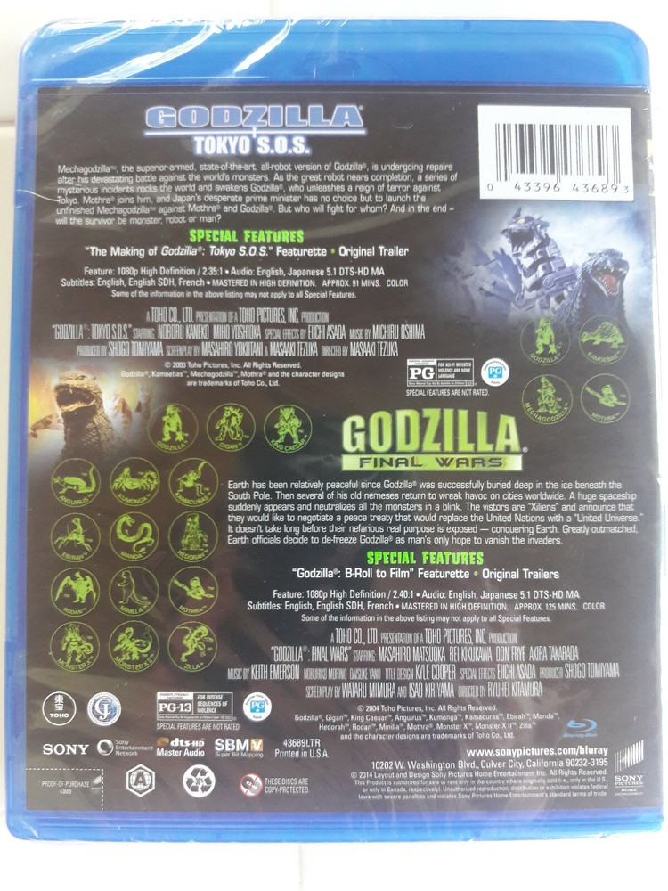 BLU-RAY Region A (U.S.A & Canada) Godzilla Final Wars & Godzilla: Tokyo S.O.S. Toho Collection NEW SEALED Images are of actual item you will receive. See pictures....