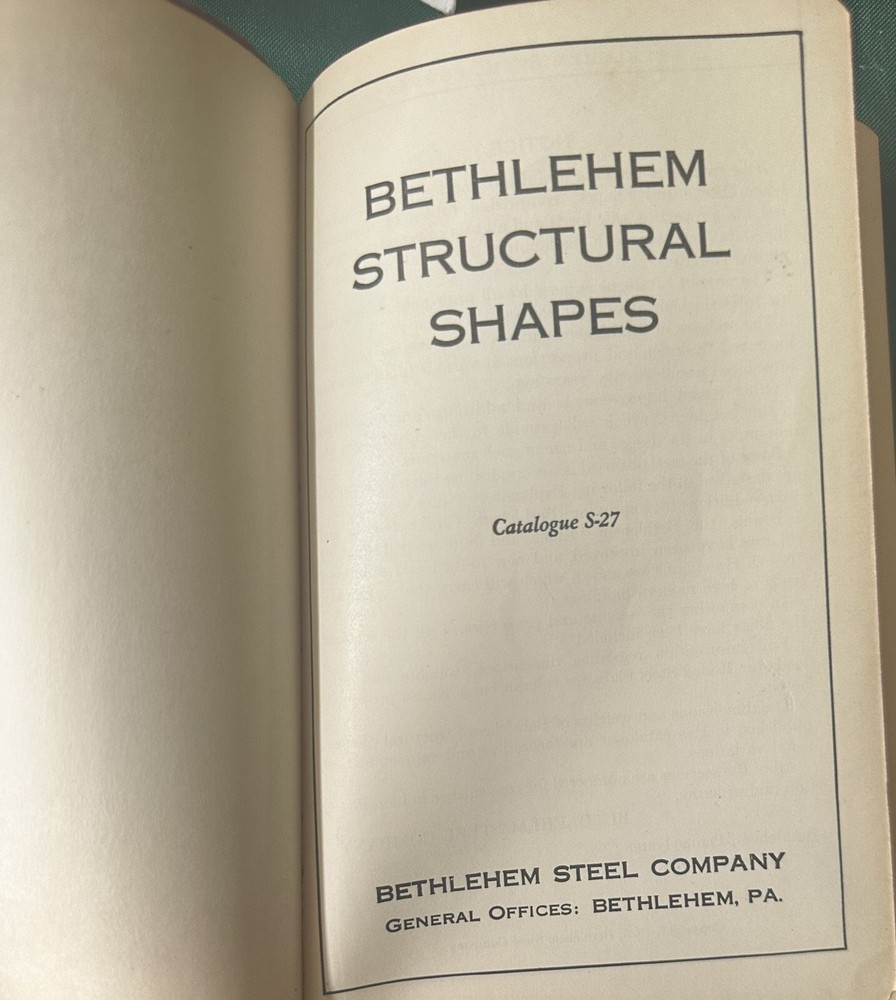 This vintage book from Bethlehem Steel Company provides a comprehensive reference guide for engineers and manufacturers interested in the technical details of structural shapes. Printed in 1928 and featuring a leather binding, it contains invaluable data on dimensions and weights of various shapes and sizes. Whether you're a collector or a professional in the manufacturing industry, this book is a must-have addition to your library. The book is an original 1st edition with a personalized touch, making it a unique find for any history buff or collector of antique books. It was printed in English and is a tangible piece of North American manufacturing history. Don't miss out on the opportunity to own a piece of the past with this Bethlehem Steel Catalog Structural Shapes book.