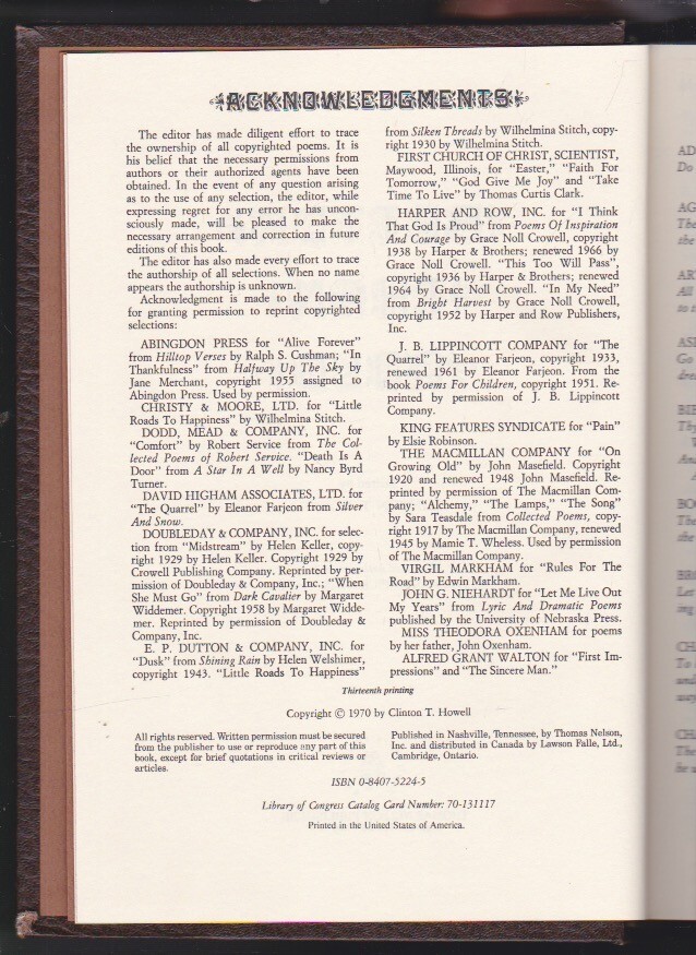 Extremely Rare Out-of-Print Original 1970 Edition. Pages clean, crisp and unmarked. The lightest shelf wear. Back top edge has a light scuff/tear and the bottom edge has a little tear in the leather. No tanning of the pages. Inscribed dedication on inner cover. Images on listing, are of this book. HARDCOVER/LEATHER BOUND_______This book is full of readings that will speak to all of your emotions.