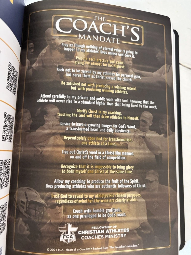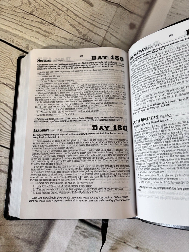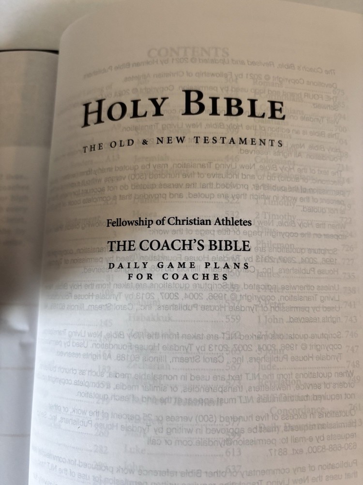 Bible The Coach's Bible NLT Black Faux Leather Touch FCA New Living Translation Daily Devotions