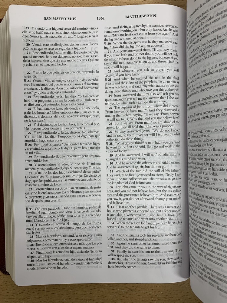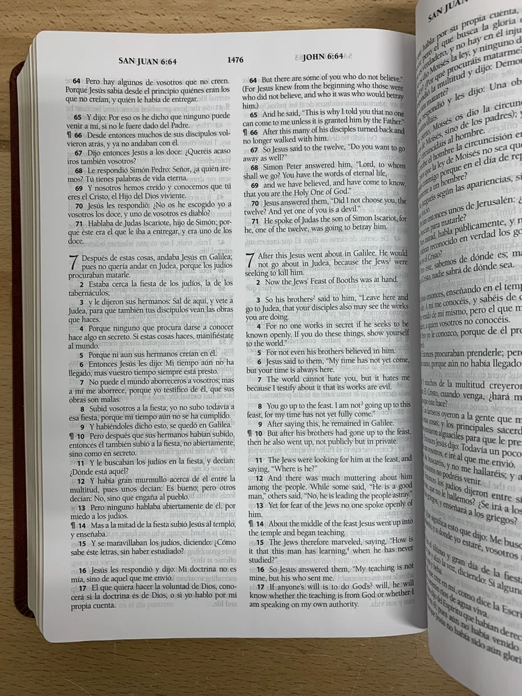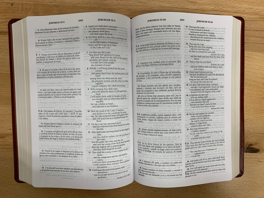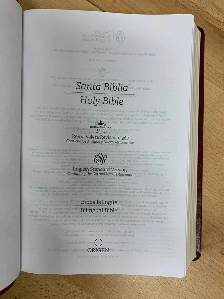 This bilingual Bible is perfect for anyone who reads in both English and Spanish! The large 10-point font makes it easy to read, and the beautiful brown leather-like cover gives it a premium feel. I love having both the Reina Valera 1960 and ESV translations side by side—it’s great for study, worship, or personal devotion. The size is just right for carrying to church or small group. A fantastic gift for bilingual believers or those learning either language! Highly recommend for clarity, quality, and convenience.