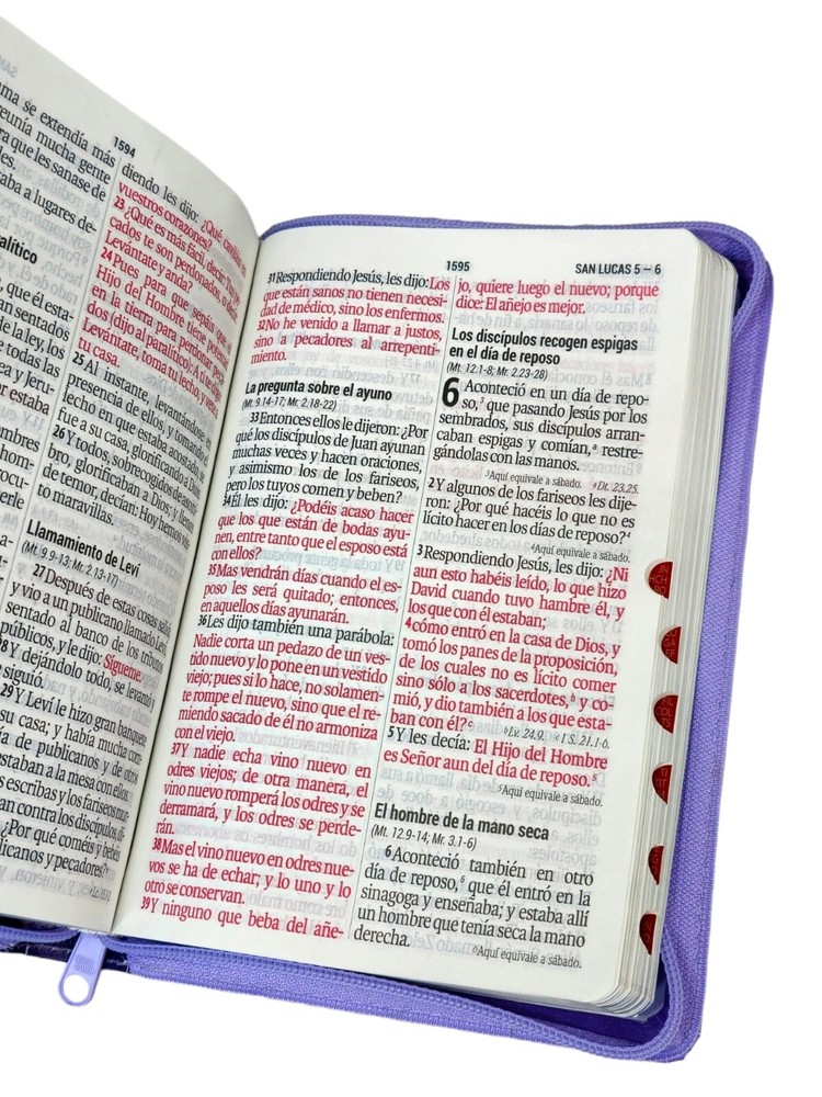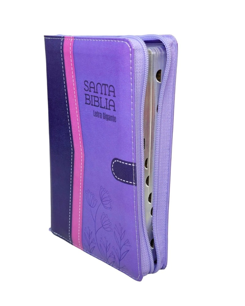 Biblia letra gigante 14 puntos Reina-Valera 1960 tamaño manual lila con índice. Características . Tamaño 8.½ x 6.½ pulgadas inches . Letra Gigante fácil de leer . Tamaño de letra 14 puntos . Tapa imitación cuero . 2 cintas marcadora . Indice . Acabado de alta calidad . Concordancia . Más de 5.000 referencia cruzadas . Palabra de Jesús en rojo . Plan de para leer la biblia en un año dedicatoria . Mapas a todo color