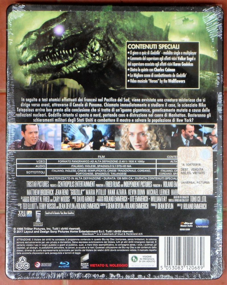 Blu ray Ultra Rare Steelbook Metal Box Limited Edition Godzilla Gozilla Jeanreno The description of this item has been automatically translated. If you have any questions, please feel free to contact us. 1 blu-ray disc + 1 dvd, steelbook metal box set the case is made of metal steelbook metal box very rare Italian edition original from shop collector's series limited edition godzilla gozilla Actors: matthew broderick, jean reno, maria pitillo Director: roland emmerich blu ray audio: Italian, English, Spanish 5.1 DTS HD MASTER AUDIO Subtitles: Italian, English, Simplified Chinese, Traditional Chinese, Korean, Portuguese, Spanish, Thai Duration: 139 minutes Blu-Ray region code: ABC (REGION FREE) Special Contents: Yes steelbook edition metalpack rare metalpack steelbook blu ray bluray steelbook blu ray steelbook bluray steelbook bluray blu ray blu-ray blu-ray disc movie films movie movies steelbook steel book steelbook metal metal steelbook 1 blu-ray disc + 1 dvd, steelbook metal box set the case is made of metal steelbook metal box very rare Italian edition original from shop collector's series limited edition godzilla gozilla Actors: matthew broderick, jean reno, maria pitillo Director: roland emmerich blu ray audio: Italian, English, Spanish 5.1 DTS HD MASTER AUDIO Subtitles: Italian, English, Simplified Chinese, Traditional Chinese, Korean, Portuguese, Spanish, Thai Duration: 139 minutes Blu-Ray region code: ABC (REGION FREE) Special Contents: Yes steelbook edition metalpack rare metalpack steelbook blu ray bluray steelbook blu ray steelbook bluray steelbook bluray blu ray blu-ray blu-ray disc movie films movie movies steelbook steel book steelbook metal metal steelbook Tipo Blu-ray Anno di pubblicazione 2017 Sottogenere Horror Edizione anno DVD 2017 Titolo Film, serie TV godzilla, king of the monsters EAN 5053083120689 rare boxset steelbook metal steelbook Censura T blu-ray disc blu-ray Marca Warner Bros. Genere Fantascienza e fantasy limited edition collector's series Paese di origine Italia Regia roland emmerich blu ray sigillato sealed blu ray Formato Rara Versione Steelbook Metal Attore kyle chandler,vera farmiga,sally hawkins Cofanetto Si Stile Cult Edizione Cofanetto Edizione Da collezione Edizione Edizione Limitata Edizione Edizione speciale Edizione SteelBook Codice regionale Blu-ray: Region Free Articolo modificato No
