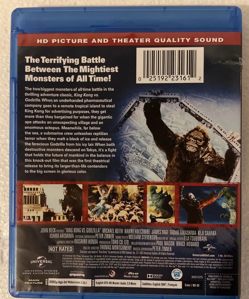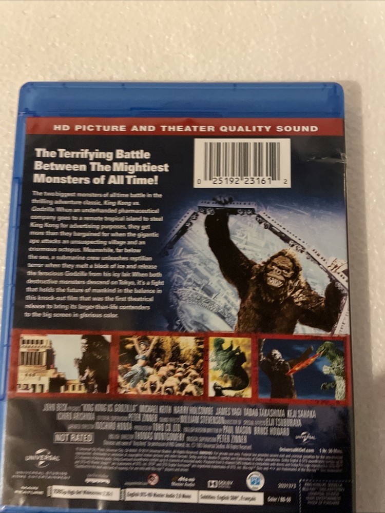 The Blu-ray King Kong Vs Godzilla (1976) movie is a science fiction film directed by Ishiro Honda and Thomas Montgomery. Produced by Universal Studios, this Standard Edition Blu-ray comes in a Blu-ray case with a Region Code of Blu-ray: A. The film features an Action & Adventure genre with English language options and widescreen viewing. With a release year of 1962 and a runtime of NR, this Blu-ray includes both King Kong and Godzilla in a thrilling storyline.