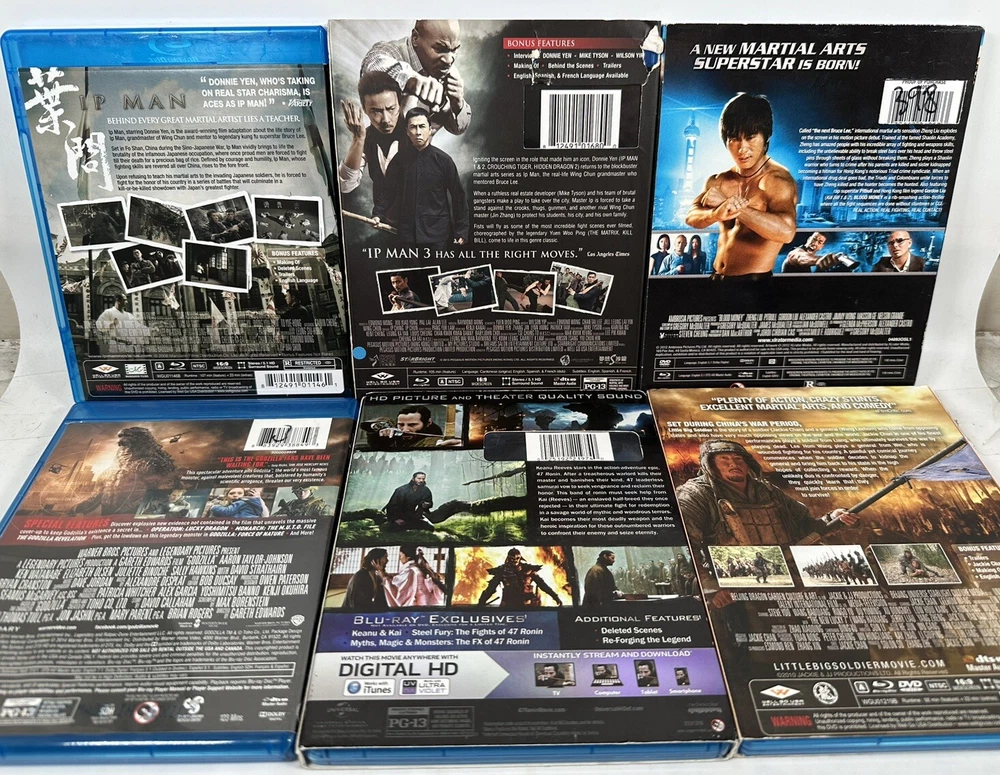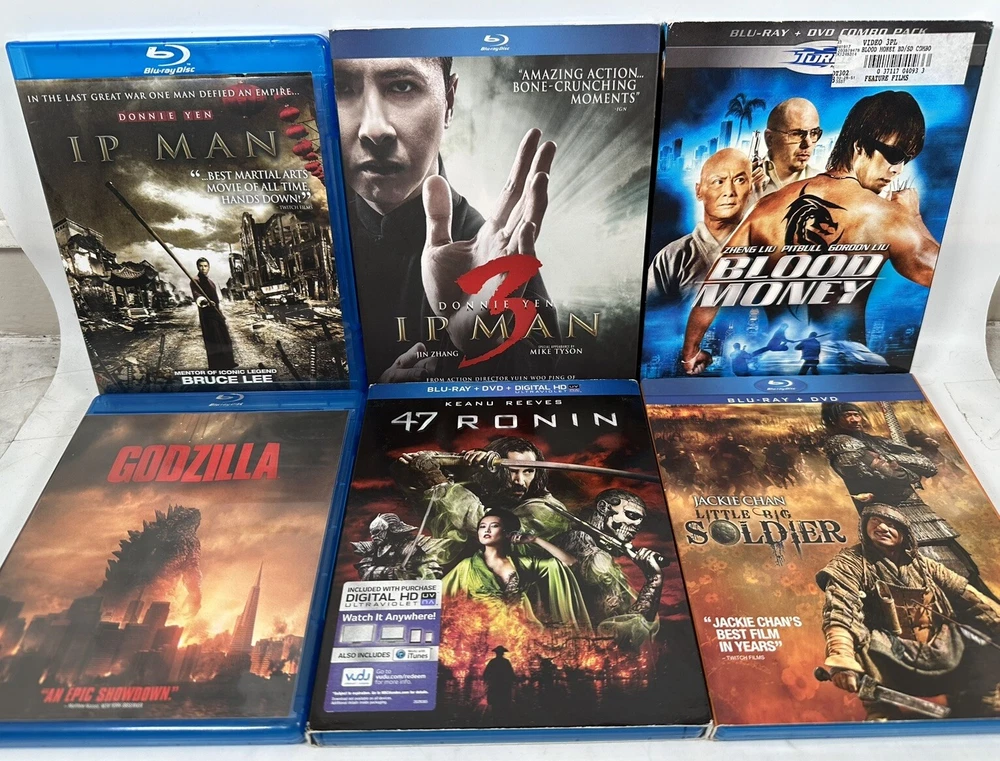 Japanese/Chinese Martial Arts Blu-ray lot of 6 CHECK PHOTOS FOR CONDITION CONCERNS AND MOVIES THAT ARE INCLUDED Marker writings on some of the cases and discs (former rentals) Blu-rays only, Godzilla missing DVD Guaranteed to play and work properly! Package sent via USPS Media Mail plus tracking confirmation. Feel free to contact me with any questions.