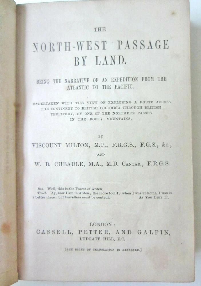 North West Passage by Land --Milton & Cheadle-- 1865 - Leather This book is in very good condition. Hardback, Leather cover. Leather is worn in places. Leather on spine has pulled away on part of one side. Pages have some discoloration and foxing , in places. Reads, 1865, by Milton & Cheadle. Illustrated. Please view all photos for visual condition. Thank you! Please, email with any questions, before bidding. Thank You and Good luck! Thank you for looking and good luck! Check out my other items ! Be sure to add me to your favorites list ! We accept Paypal for all purchases. Upon receiving payment, item(s) usually ship within three (3) business days (M-F). If you need your purchase shipped faster, please message us and we will be happy to rush your purchase. Payment within three (3) days of winning the auction is appreciated! Thank you for stopping by and giving us a look! Every effort is made to describe items fairly and correctly. I will be more than happy to answer any questions or send additional photos, by email during the auction. Please look at the pictures and ask questions before bidding. Thank you.
