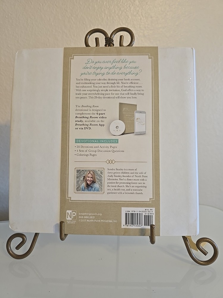 Breathing Room Devotional, by Sandra Stanley, soft cover. A 28-Day Devotional for Women. Good condition. Start your journey. * Please note I do not offer returns. * Terms of service: * By purchasing you agree to the item description as indicated in the photos and details outlined. * If there is an issue with shipping i.e. you have not received, or damaged, notify me promptly to address it with shipping service. * All return requests forced through eBay are subject to buyer's expense. I will not pay for return shipping on items purchased under any circumstance. * Please review the listed item condition, description and photo thoroughly. * Make note that some items listed are subject to age and use conditional alterations to include color variations, hardware change, wear and tear or the like before being listed. Make sure as the buyer you view photos thoroughly or contact sellers with questions. * Be aware that many of the items listed are pre-owned, vintage or antique and they should NOT be held to the same conditional standards or ideology as a new item, or items already in your possession or an item you intend to pair with a similar item. It just may not match due to age, wear, and storage. * Please note I am not an authenticator, nor do I have a certificate to validate items listed. I do my best to describe listing accuracy through description and photos. I compare items to other items I see listed. On some occasions I send item pictures and descriptions to an outside source for authenticity, in that case I will mention the outcome and source. It is the buyer's responsibility to determine value for them upon bidding and ultimately purchasing an item I have listed. *Only bid on items if you understand policy and desire to add to your collection. If you feel you have made a mistake, retract the bid immediately. I will not. Go to the eBay Help section for instructions. * Although some items have tags, appear to be new, they may be out of date or have been stored for a significant amount of time. * Combined shipping available on items that are applied at checkout. *Seller is open to realistic offers, message with request. Policy is subject to change at the will of the seller. * Message me if you have questions. I am happy to offer further assistance. * If I have earned your business with a positive outcome, please let me know with a review I will reciprocate.