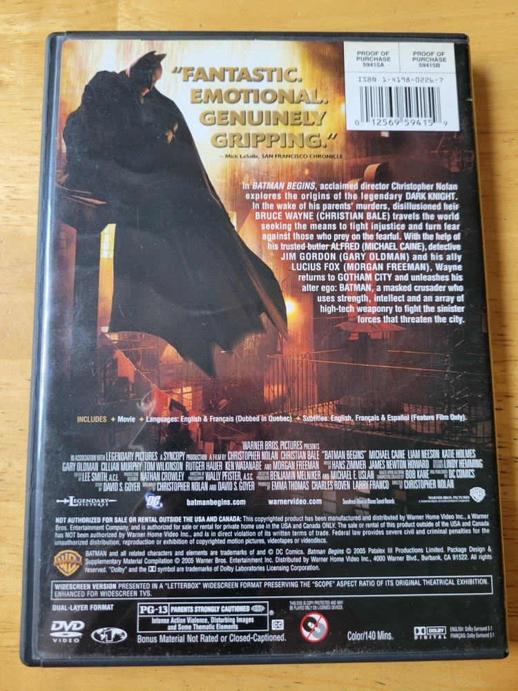 Build your lot of DVDs/movies * A thru L ** see other listings for more Obviously, I haven't had time to watch every movie. I am listing over 500 DVDs that were part of my late brother's collection. I another listing with the latter half of the alphabet so please add me to your favorites and check it out. I also have separate listings for some series and movie collections. Movies are a combination of widescreen and full screen. I've taken pictures of front and back of cases so please look at the pictures and you will see what you will get if you purchase. Cases show signs of use: scratches, scuffs, and some have stickers on them. If it is really bad or broken, I've added a picture of the damage. I'm listing these as "good" because I don't have the time to inspect each CD for scratches. My brother took good care of his movie though and the majority of them are in very good condition. I will gladly combine shipping for multiple purchases. There is a shipping discount that will be applied at checkout for this listing. If you are interested in DVDs from my other listing and want combined shipping, please message me. Expand Your Collection now! Please message me if you have any questions or want any other pictures. Thanks for looking!