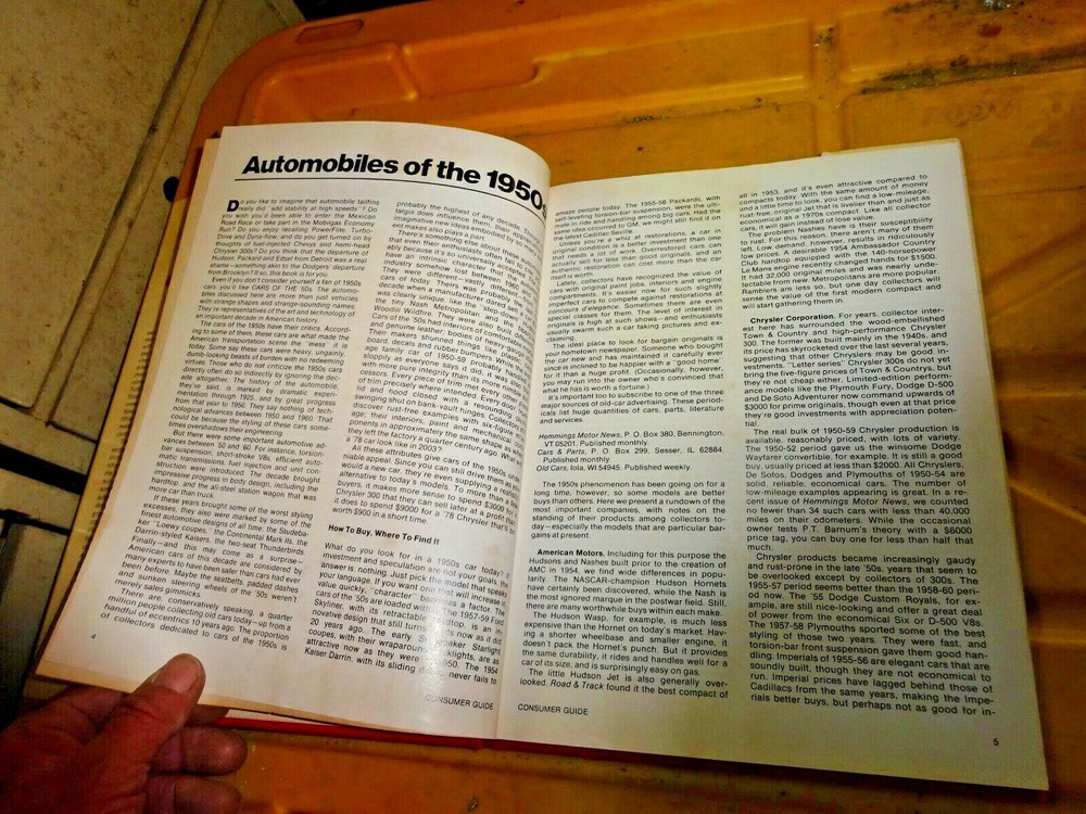 CARS OF THE 50s - BY THE EDITORS OF CONSUMER GUIDE (1978) International Buyers – Please Note: · Import duties, taxes and charges are not included in the item price or shipping charges. These charges are the buyer's responsibility. · Please check with your country's customs office to determine what these additional costs will be prior to bidding/buying. · These charges are normally collected by the delivering freight (shipping) company or when you pick the item up – do not confuse them for additional shipping charges. · We do not mark merchandise values below value or mark items as "gifts" - US and International government regulations prohibit such behavior. Payment: SHIPPING: WE CAN NOT REDUCE SHIPPING ON MULTIPLE ITEMS AFTER YOU HAVE ALREADY PURCHASED THEM. PLEASE EMAIL IN ADVANCE FOR MULTIPLE ITEM SHIPPING COSTS. Paypal or credit card payment is required within 3 days of purchase. Unpaid items are relisted at buyers expense if we are not notified. Florida shipments or local pickup requires that we collect 7% Florida sales tax. Returns: Please contact us if there is a problem before leaving feedback. We want to encourage good communications and the best possible Ebay transaction. For used merchandise - while we offer refunds for items sold we encourage the buyer to inspect the condition via the photographs. Please request additional photos after purchase if not sure of condition. Please supply email address to seller. The buyer is fully responsible for the cost of return shipping for purchase refund. No exceptions for UPS, USPS, FedEX or Freight. Please note : Our masts and booms are available to local buyers that visit our marine salvage yard. Please contact us for availability prior to purchase. We prefer shipping request with a zip code and we need to know if the item is shipping to a business or a residence. It is less expensive to ship to a business location. Please allow at least 24 hours for answers to product questions before calling our store