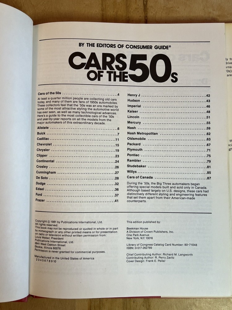 CARS OF THE 50s BY THE EDITORS OF CONSUMER GUIDE 1981 hardcover dustcover book. Condition is Very Good. Shipped with USPS Media Mail....