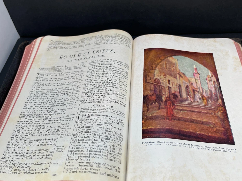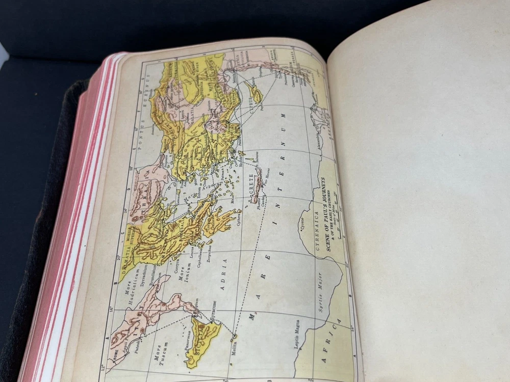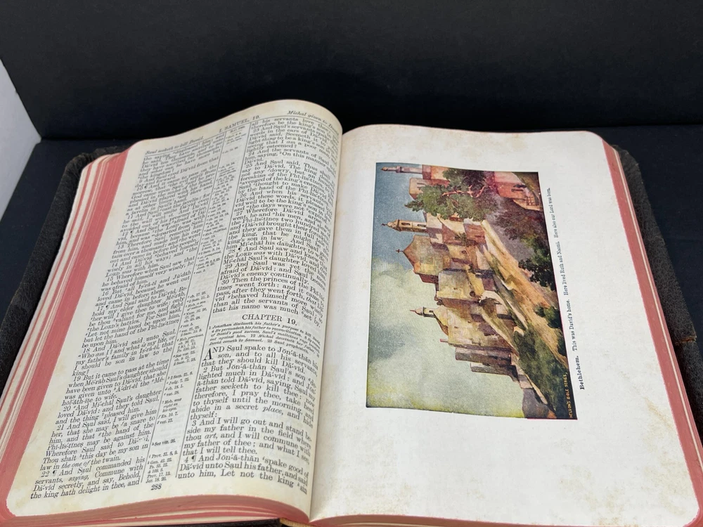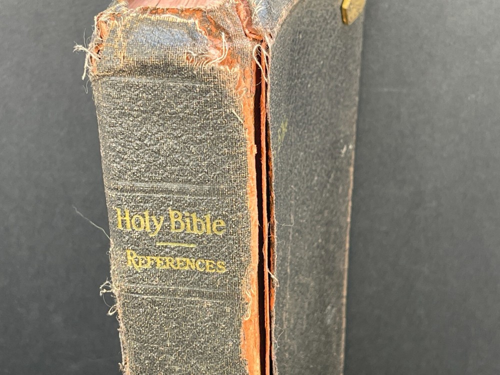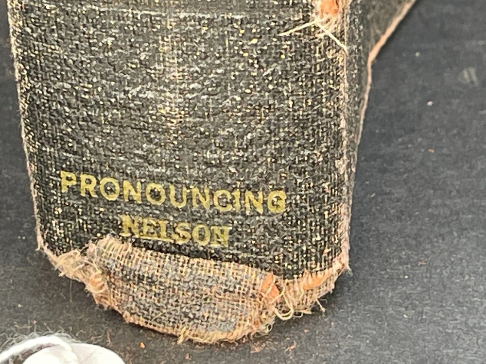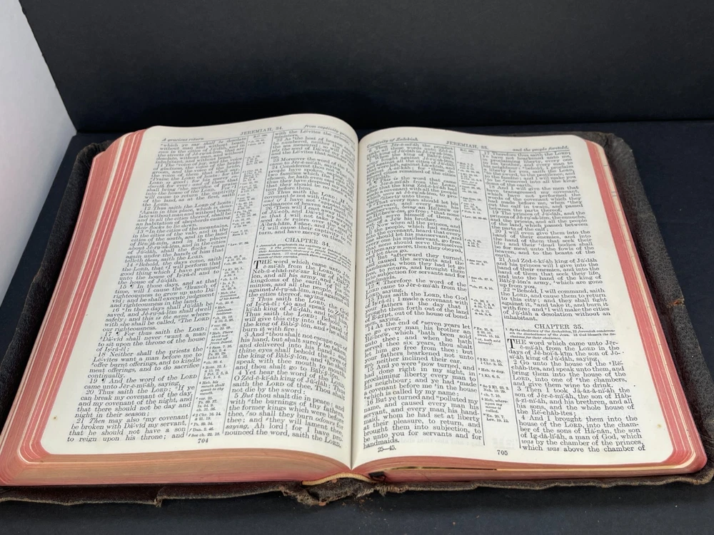 ONE(1) USED ANTIQUE HOLY BIBLE (1920's - 1944 - dedicated 1944) PUBLISHED BY THOMAS NELSON & SONS. THE BIBLE IS TRANSLATED FROM TONGUES WITH OLD AND NEW TESTAMENTS AND MAPS, BOUND IN BLACK LEATHER. THE BIBLE HAS COVER SEPERATIONS AS SEEN IN PICTURES, AND THERE IS SOME SPINE SPERATION.. THERE ARE NO LOOSE PAGES. A WELL USED BIBLE, BUT STILL SOUND AND A NICE WW2 WARTIME BIBLE. PLEASE CHECK OUT MY OTHER SALES, AS I AM SELLING OFF A LARGE BIBLE/ RELIGIOUS PRAYER BOOK COLLECTION!!! I WILL BE ADDING MORE BIBLES UNTIL THE ENTIRE COLLECTION IS POSTED!!! Please see the pictures as completion of the description. We will only accept a return if you did not get the pictured item, or our description is incorrect. PLEASE ASK QUESTIONS BEFORE YOU MAKE A PURCHASE, I REPLY QUICKLY!!! Buy with Confidence, you will get the exact item you see in the sale, and if you have any issues, just check my feedback and rest assured you are purchasing from a long time (25+ years), 100% perfect record EBAY'er. The 1920's - 1944 NELSON & SONS HOLY BIBLE will be well packed and shipped within 1 business days of payment! GOOD LUCK BUYERS!!!