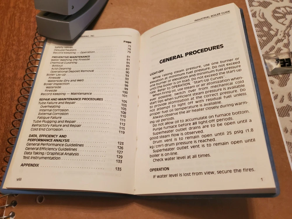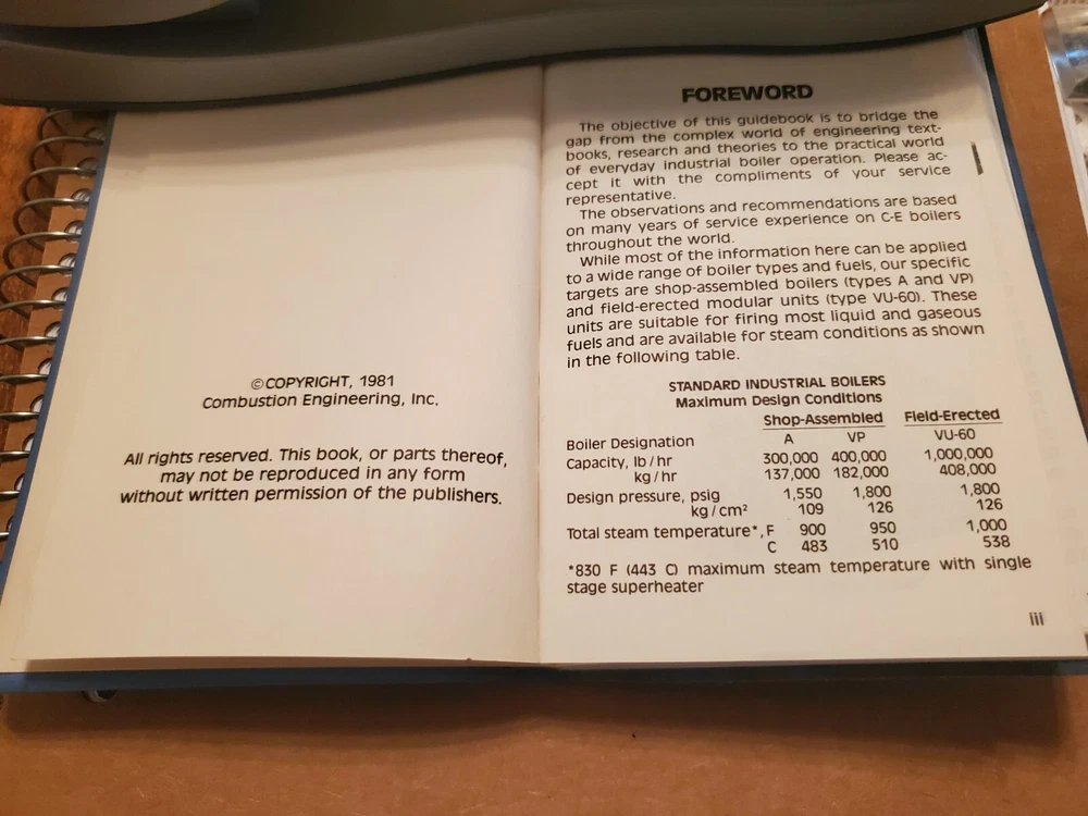 This C-E Power Systems boiler guide is a must-have! The compact faux leather book is in excellent condition, with all 146 pages intact. Perfect for quick reference, it's packed with essential operating knowledge for industrial boilers. The powder blue cover gives it a classic, professional look. Highly recommended for engineers and technicians!