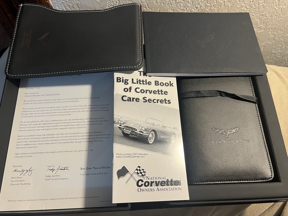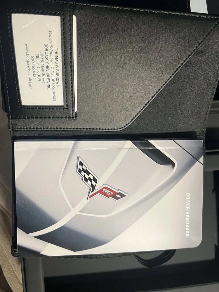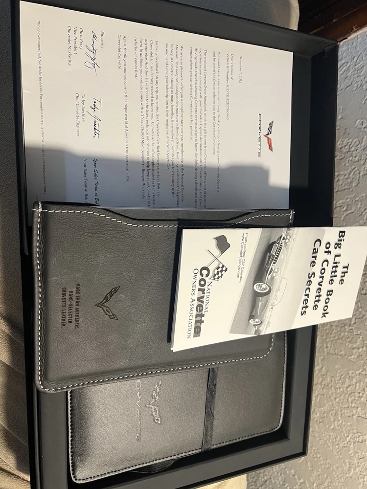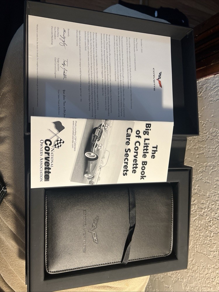 Hardcover corvette driver handbook with purchase letter, big little book of corvette care secrets, corvette leather with concepts...