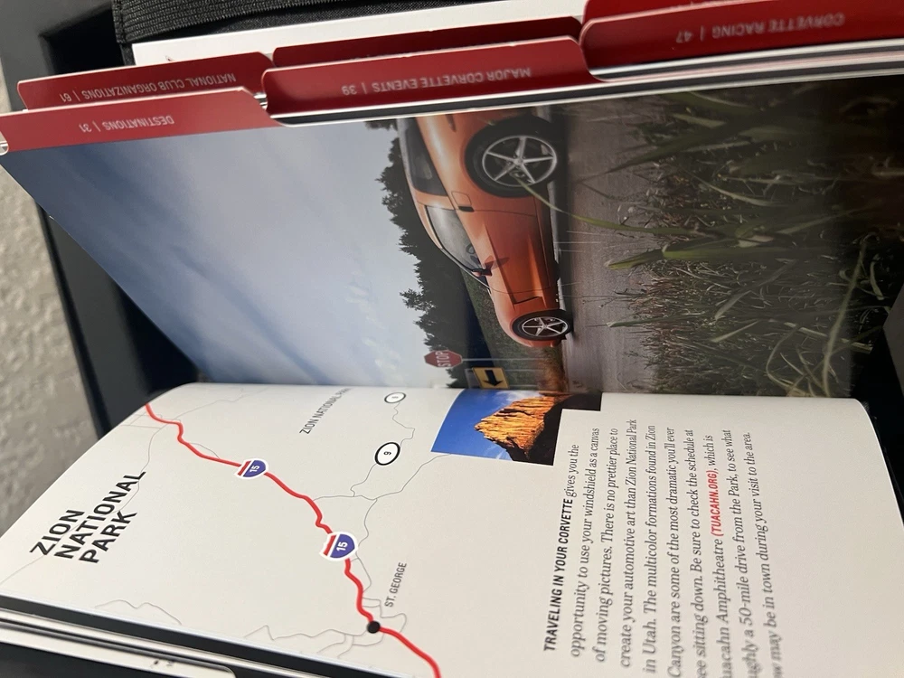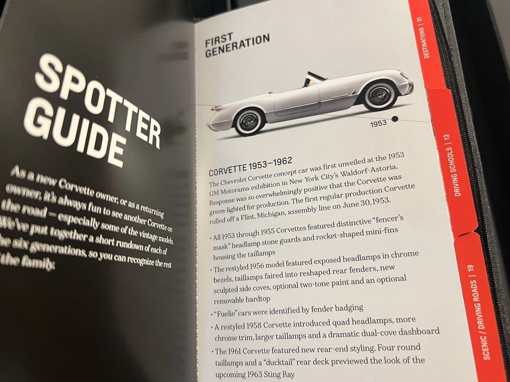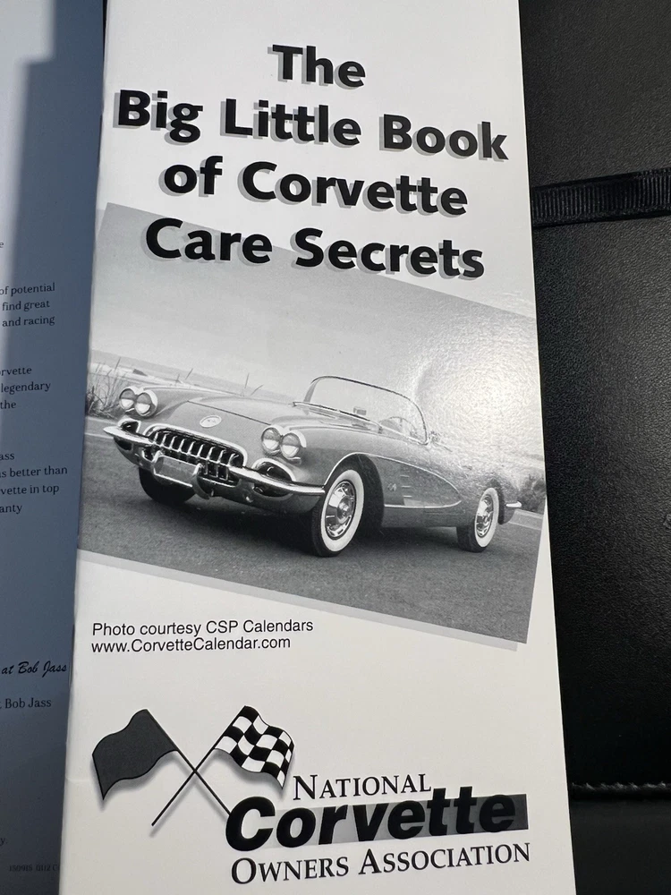 Hardcover corvette driver handbook with purchase letter, big little book of corvette care secrets, corvette leather with concepts