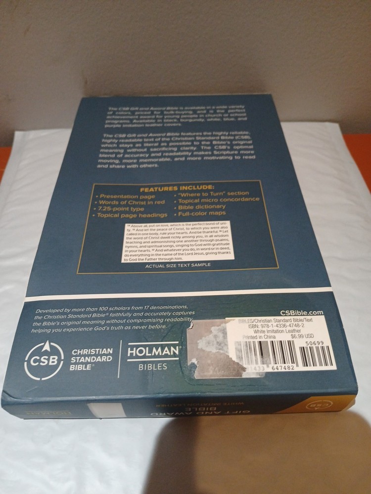 Dive into the CSB Gift & Award Bible, a prestigious addition to your spiritual library. Published in 2018 by B&H, this beautiful white hardcover edition is not only a treasure for its content but also for its faux leather binding which gives it a sophisticated feel. With 736 pages of the Christian Standard Bible text, it's well-suited for individuals seeking a comprehensive Bible experience. Designed with a historical genre focus, it measures 8.5 inches in length, 5.6 inches in width, and a thickness of 1.5 inches, making it a substantial yet portable companion for daily reading or personal reflection. This nonfiction novel is ideal for a wide range of readers, including ages 9-12, young adults, and adults, ensuring that the message reaches a diverse audience. What if you get 2 tracking numbers??? FedEx andUPS use the post office for final delivery so check both numbers for daily updates inputed by whichever carrier has it at the time. You may buy priority or ground shipping, both come with insurance. Please check your item it may have a free shipping option (GROUND shipping by UPS, FED-EX, OR USPS with post office final delivery) IF Your Item Is Delivered Damaged, You May Recover The Cost of Your Item By Filing A Claim With The Post Office. I cannot file a claim. I do not add extra handling or processing fees. Any tax or vat is handeled by eBay per local regulations. I ship weekdays, usually the same day … unless … the fish are bittin