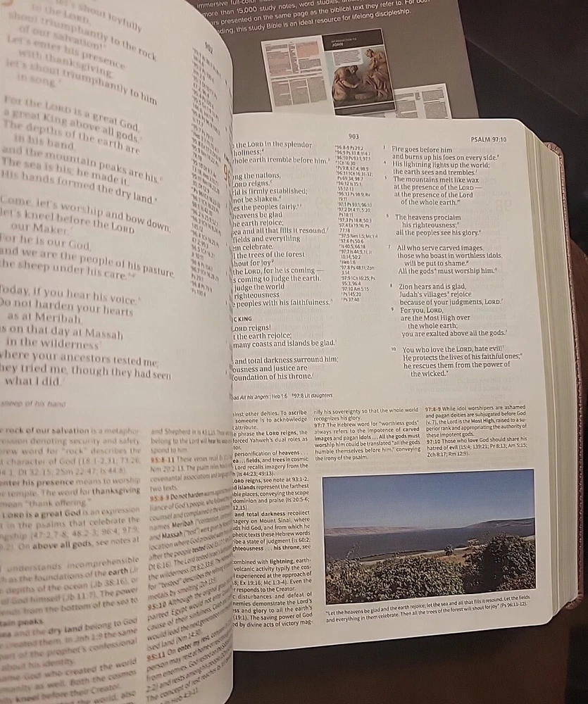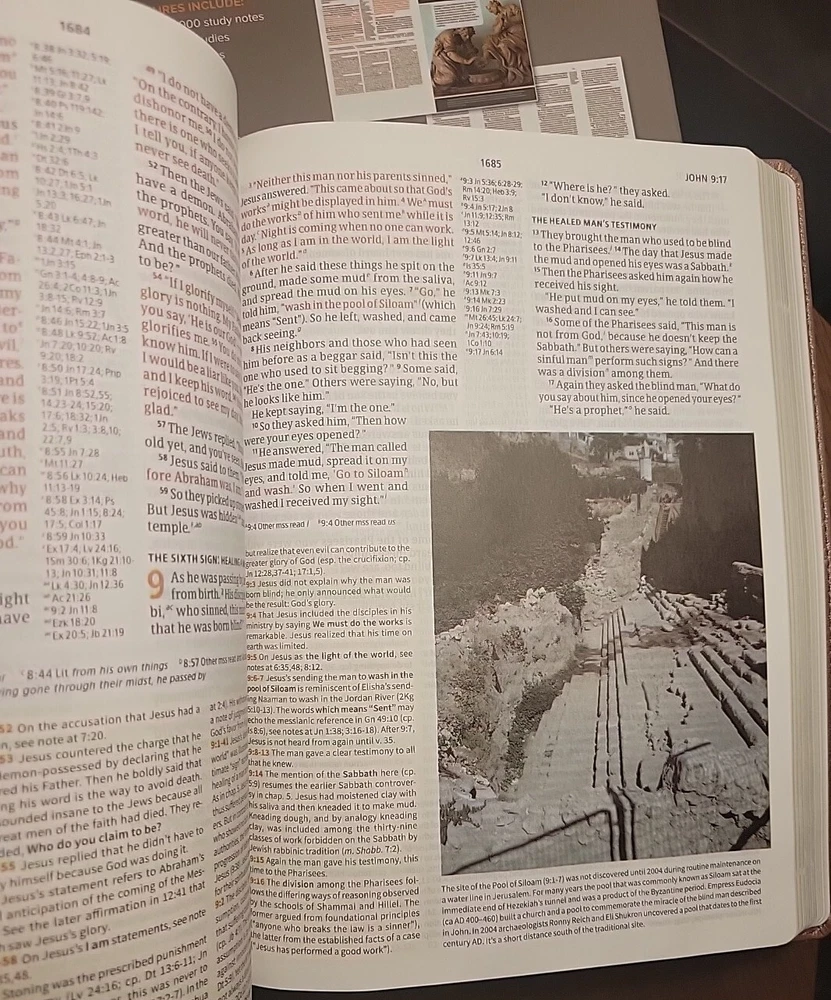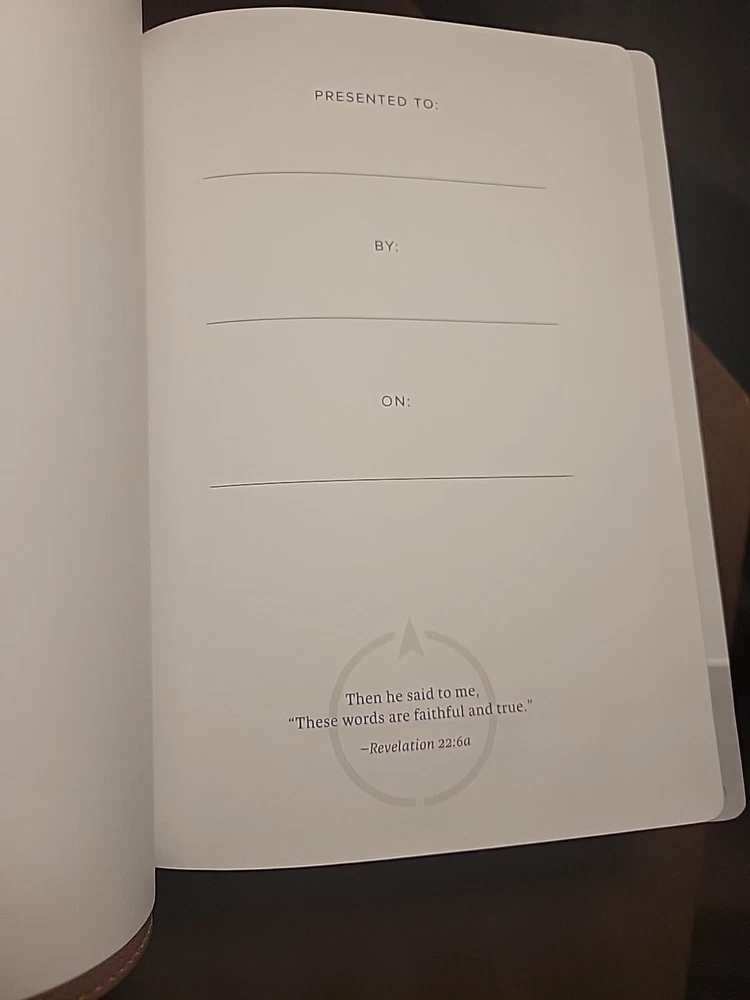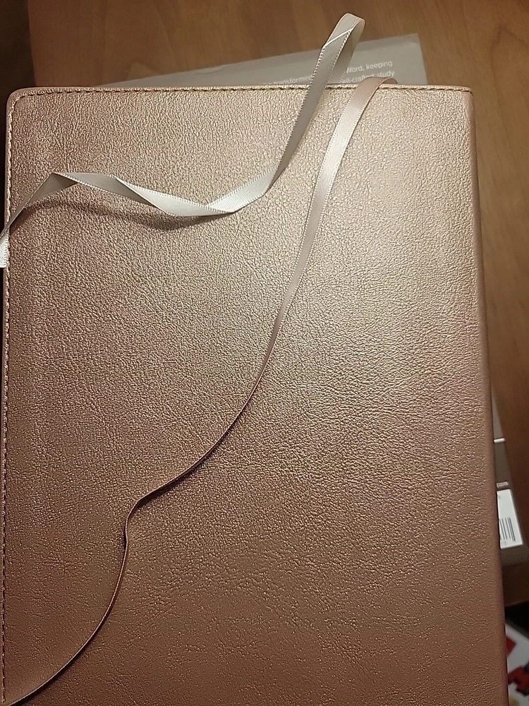 The item arrived earlier than estimated. And arrived with no visible damage. It was exactly what I was looking for. A beautiful well put together bible that is decent sized and feels nice in the hands. Well worth the price.