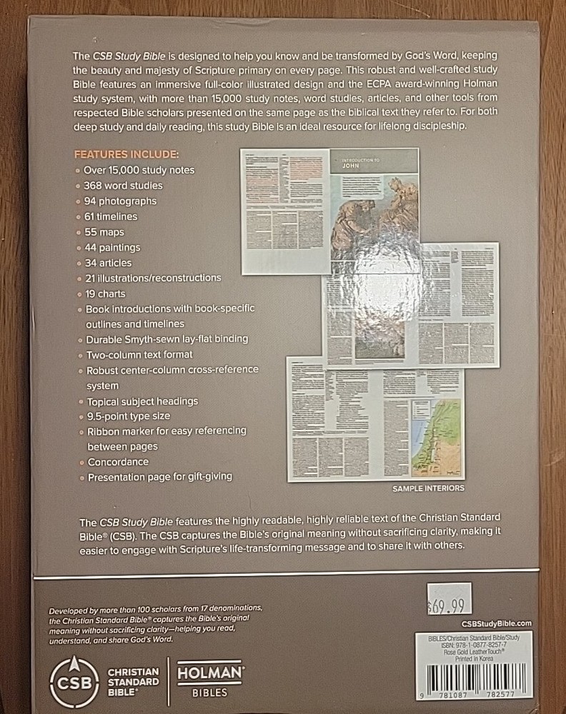 This beautifully crafted CSB Study Bible in Rose Gold Leathertouch, published by B&H, is a must-have for anyone looking to grow in their Christian faith. With over 2,208 pages of inspirational text, it is the perfect resource for anyone seeking truth, guidance, and wisdom. The Bible comes in an Imitation Leather format, making it durable and long-lasting. The author, C. S. B. Bibles by Holman, has created an amazing piece of work that is perfect for anyone interested in the Christian Life/Spiritual Growth, Christian Standard Bibles/Reference, General Christian Standard Bibles, Study Christian Standard Bibles, and Biblical Studies/Bibles Study Guides. This is a valuable item to add to any collection, with its 9.9-inch length, 7.2-inch width, 2.2-inch height, and weight of 64.4 Oz.