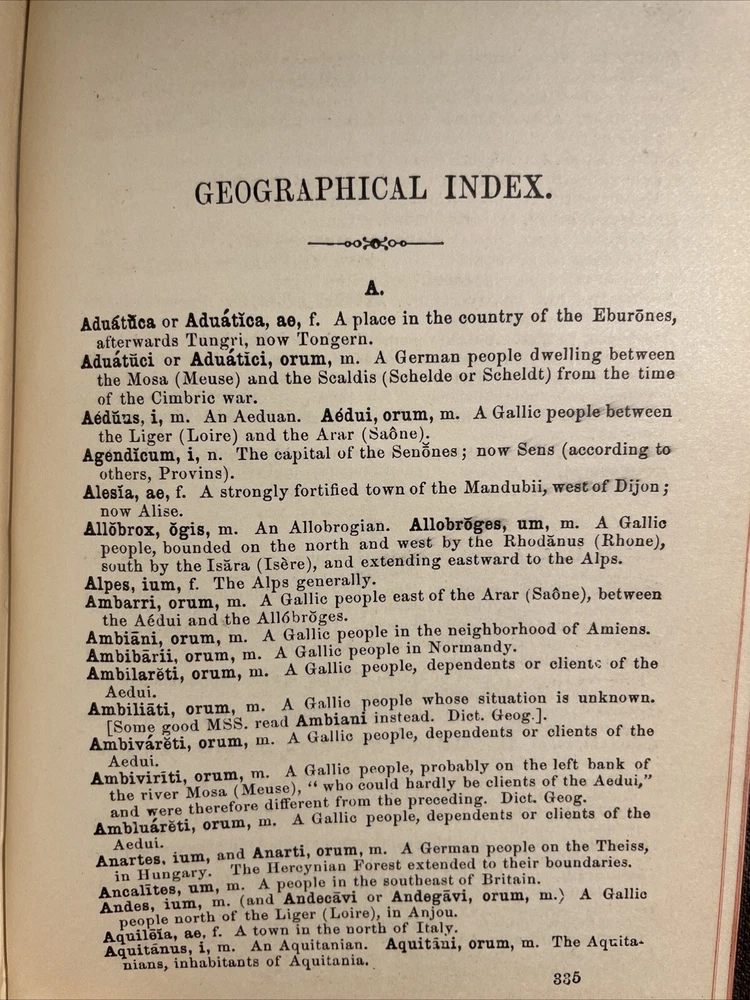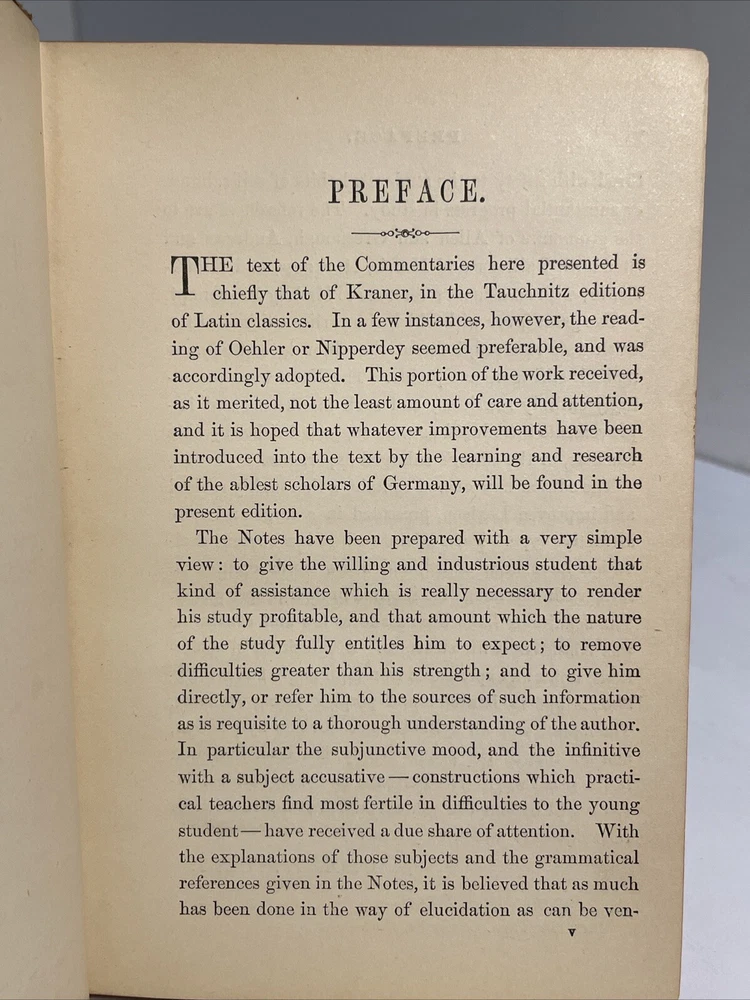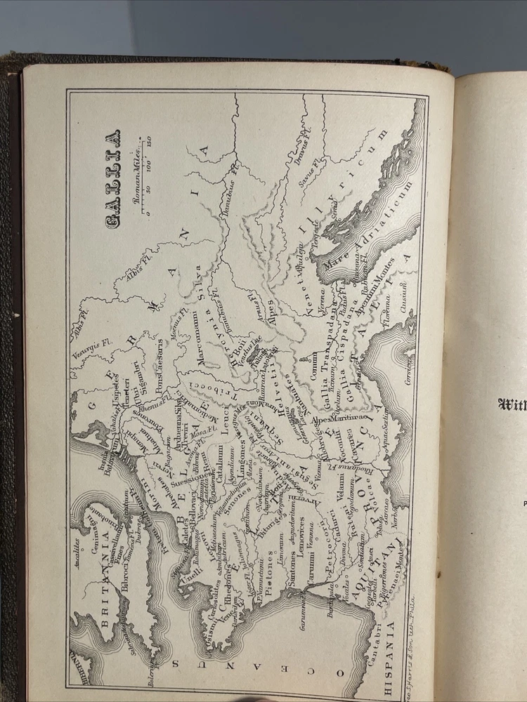 Caii Julii Caesaris Commentarii De Bello Gallico. With Explanatory Notes, Lexicon, Maps, Indexes, etc. (Chase and Stuart's Classical Series) Caii Julii Caesaris (Gaius Iulius Caesar); George Stuart (Explanatory Notes etc.) Published by Eldredge & Brother, Philadelphia, 1881 Hardcover. Condition: Poor. No Jacket. frontispiece (map), 347pp., (v) (ads). Bound in 1/4 black leather over black cloth. Leather on spine is very worn and hinges are quite tender. Some cracking to boards at joints. Volume will require some care in handling. Gilt lettering on spine a bit rubbed, but still perfectly legible. Volume admits to bumps and worn through areas to corners of boards. Mild tanning to paper. Three names in ink to front printer's blank. Small smudges to a small number of leaves, mainly very early in the book. Small chips and short tears to extremities of a small number of leaves. Text clean. Certainly an acceptable working copy. Seller Inventory # 038268