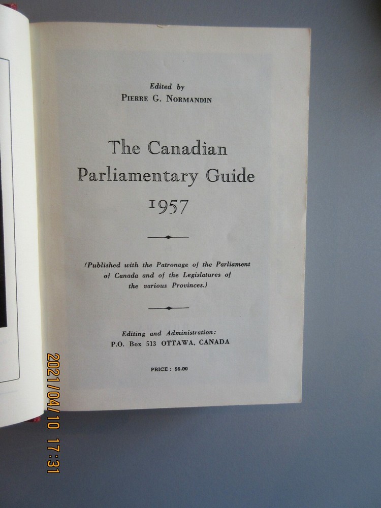 # 5837 to # 5841 Canadian Parliamentary Guide 1953 G. Pierre Normandin 863 Pages. Dimensions : 6" ¼ x 4" ½ Weight : 682 grammes Private Collection Smoke-free home