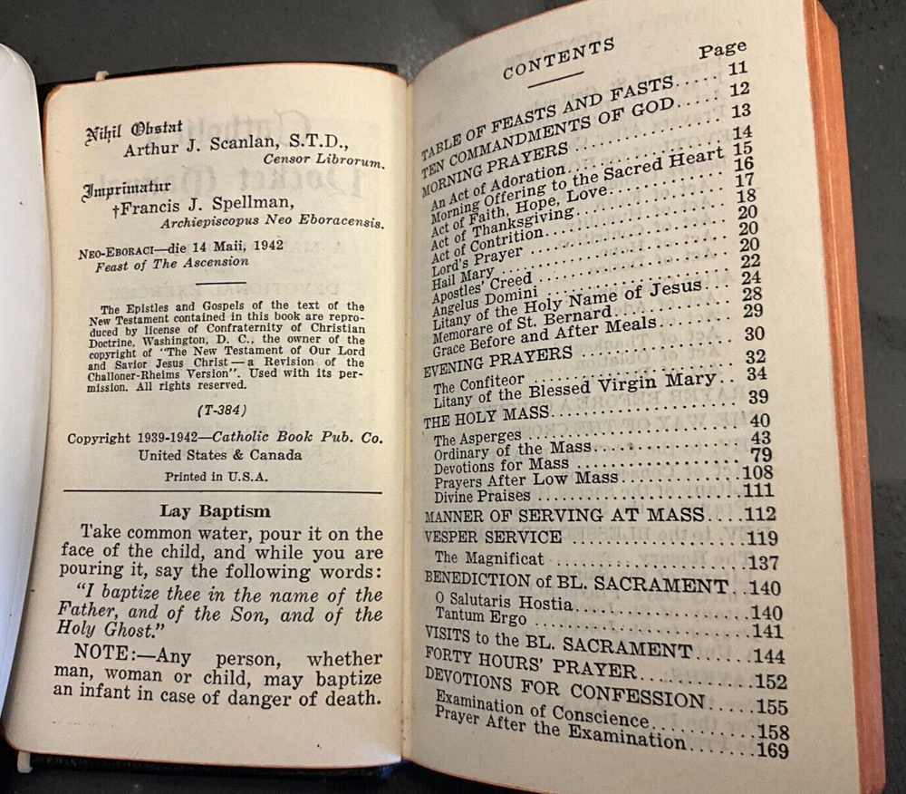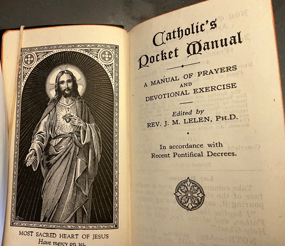 Classic collection of Catholic prayers for Mass, Benediction, lauds, vespers, forty hours, and prayers throughout the year. 156 pages. Guilt edge. See photos of actual item.
