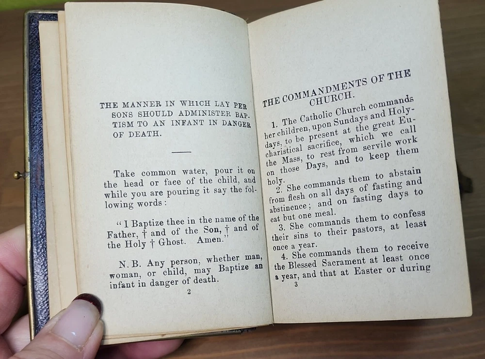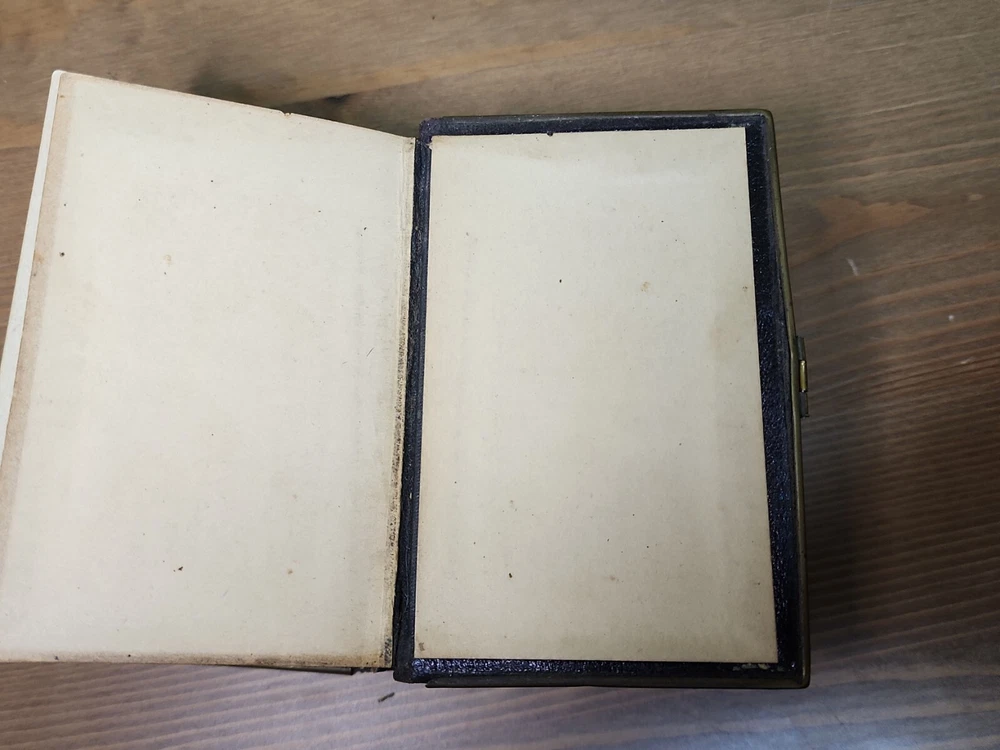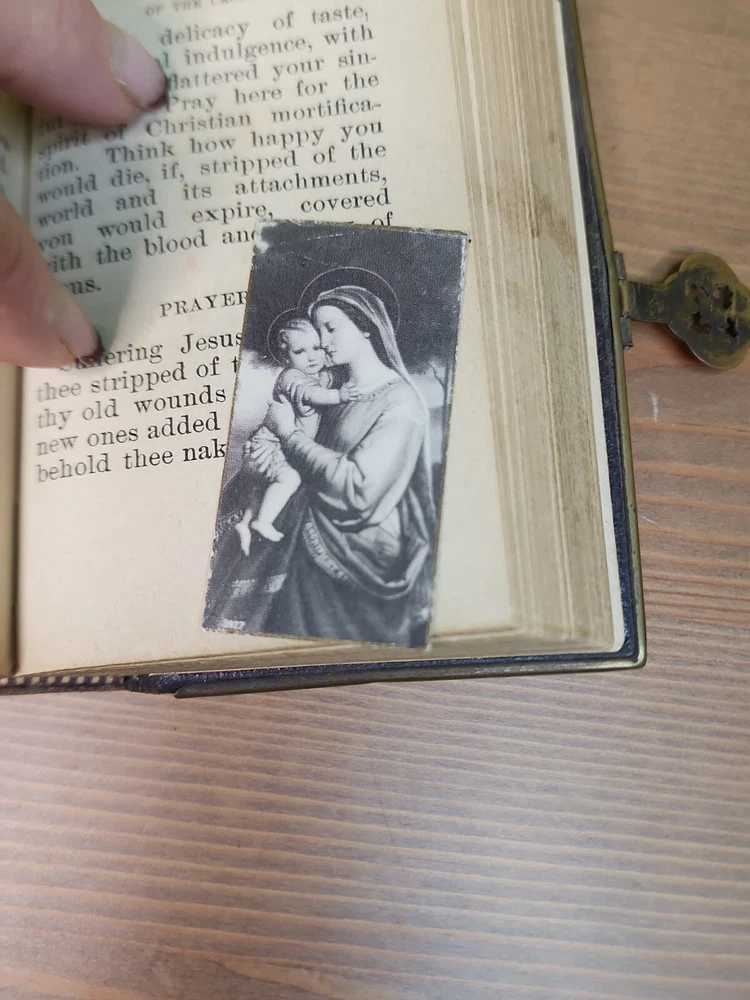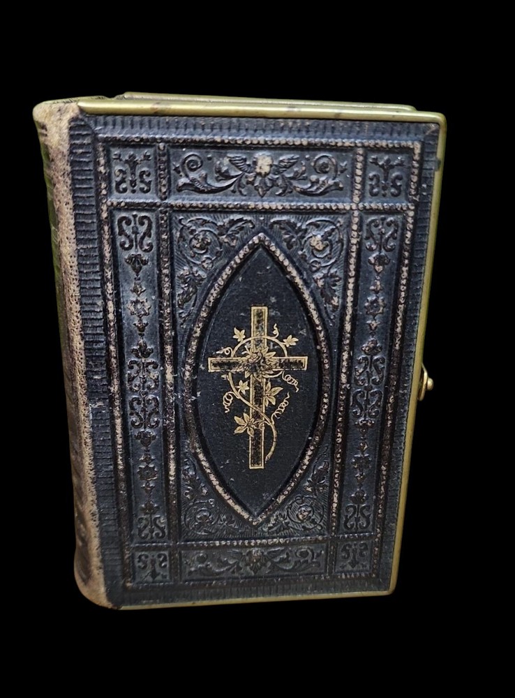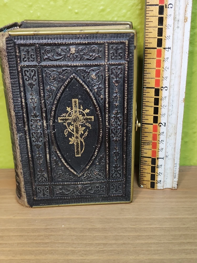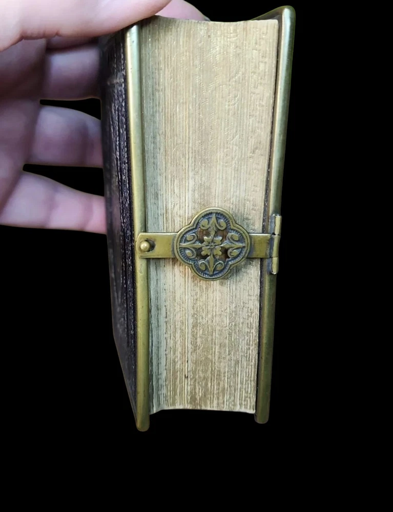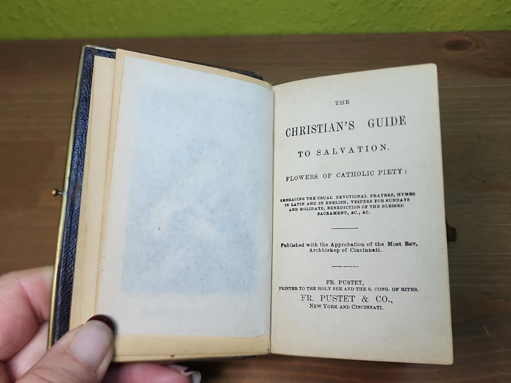 UP FOR SALE: This is an antique prayer book titled The Christian’s Guide to Salvation, published by FR. Pustet. It’s bound in dark leather with ornate gilt decoration on the cover, spine, and page edges. The clasp is intact and functional—still has that satisfying snap when you close it. Features: Gilt-edged pages Working metal clasp Illustrated devotional prints Printed in Germany Measures approx. 4.75" x 3" x 1.25" Condition: This is a vintage treasure, so expect some wear: rubbing to the covers, a couple of small cracks to the spine edge, and general age toning to the paper. The binding is holding together well. A few pages have minor foxing or handling marks, but nothing tragic. All photos show the exact book you’ll receive. AS IS AS SHOWN — Please check out all the pics and zoom in for the best look. Photos tell the story better than I ever could! Thanks so much for looking! Vintage and secondhand goodies usually have some character (aka flaws). I do my best to describe everything honestly, but I’m no expert. What you see is what you get. All my stuff comes from a smoke-free home and gets a good cleaning before it heads out. I ship Monday through Saturday fast and packed with care! Colors might look a little different depending on your screen and lighting. Props are just for show -- only the item(s) listed in the title are included. Got a problem? Message me first! I'm easy to work with and want you to be happy! Poke around my store if you want, I am happy to bundle shipping! Visit my eBay Store for more great finds!
