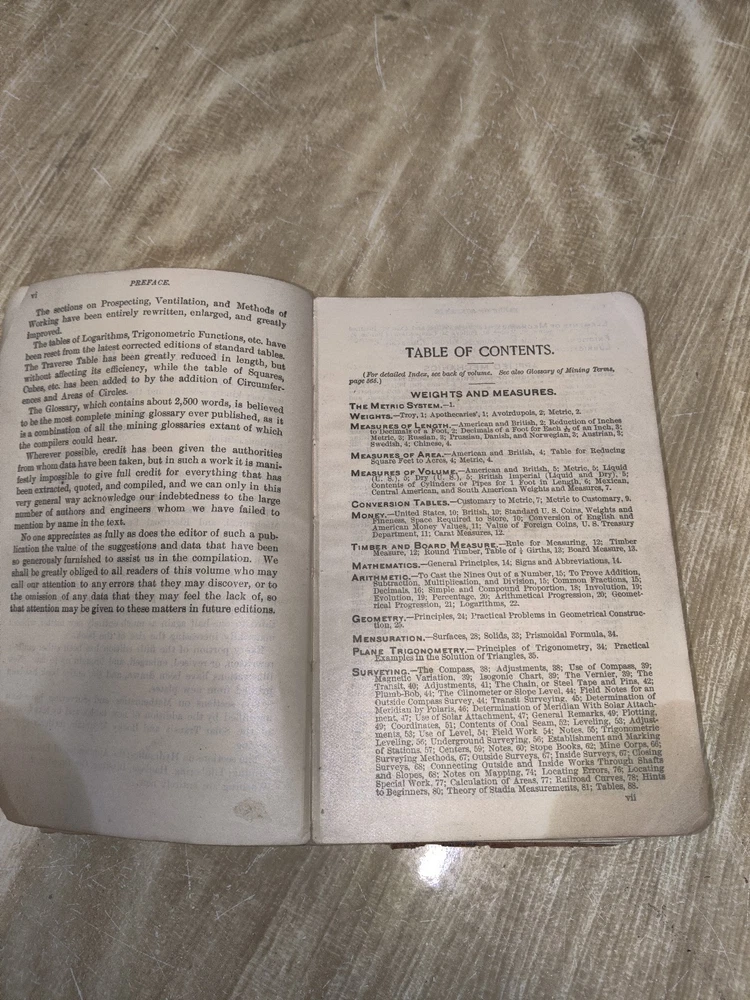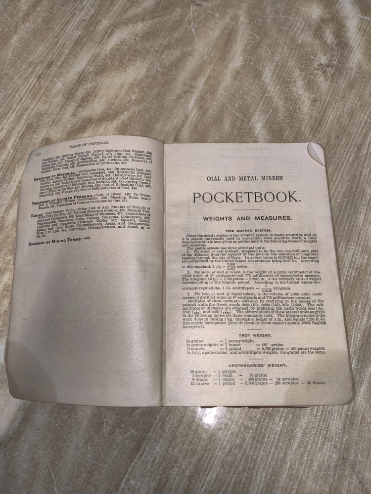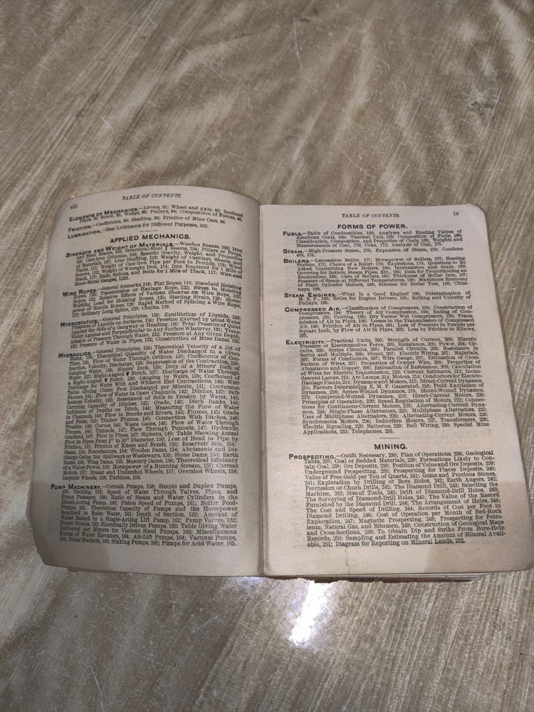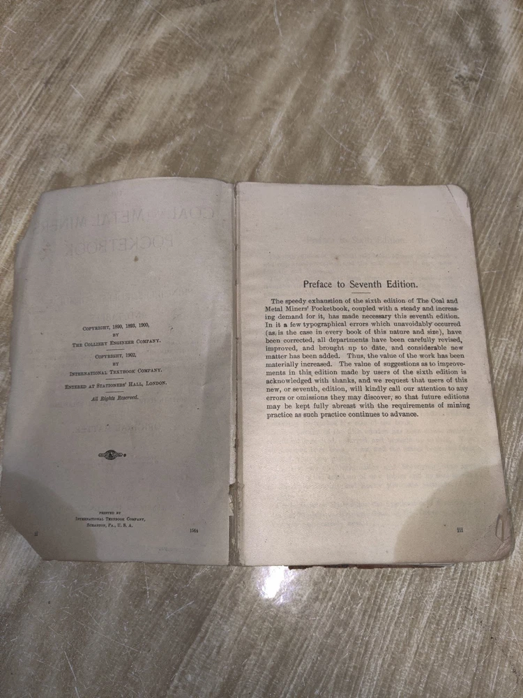 The Coal & Metal Miners Pocketbook by International Textbook Company is a seventh edition reference book printed in 1902. It is a valuable resource for mining professionals, offering essential rules and formulas in a compact and convenient leather-bound format. Written in English, this textbook provides a comprehensive guide to the mining industry, making it a must-have for collectors and enthusiasts of mining literature. Condition: Fair - -The front cover is torn off. -The spine is split but still holding everything together. -All of the pages are there and are legible. -The back cover has some damage.