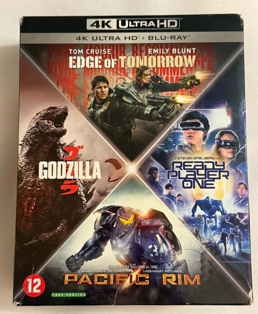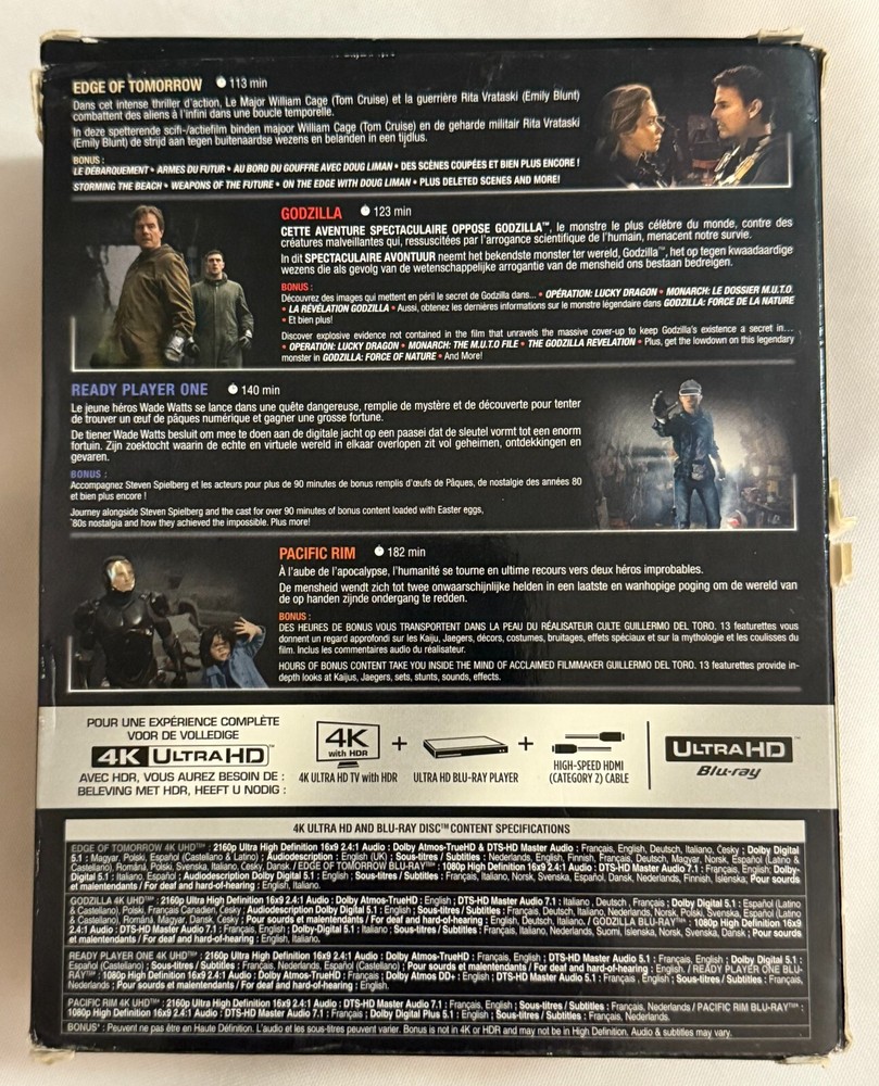 Coffret 4K Film Bundle Edge of Tomorrow, Ready Player One, Pacific Rim, Godzilla UK Import Like new with mint discs. Minor wear to box. See our photos for details. This is the exact item you will receive.