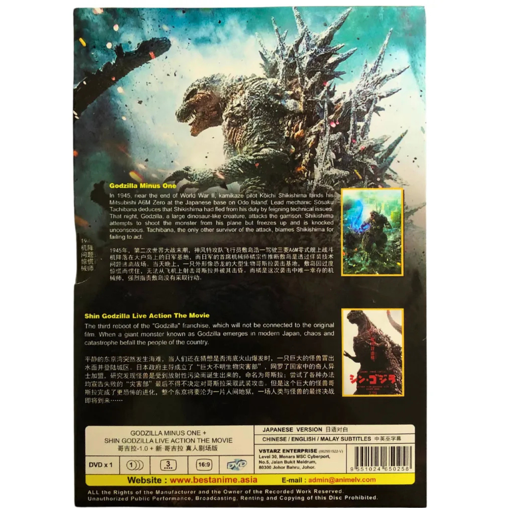 DVD Godzilla Minus One (2024) + Shin Live Action Movies (English Subtitle) Weight : 161g SKU : SKCT-18072408 Product Description: 100% ORIGINAL, NEW AND READY STOCK Title Name: Godzilla Minus One [2023] + Shin Godzilla [2016] No of Disc: 1 Disc Language: Japanese Subtitles: English/Chinese/Malay Format: DVD (Widescreen 16:9), All Region Genres: Action, Sci-Fi Starring: Ryunosuke Kamiki, Minami Hamabe, Yuki Yamanda