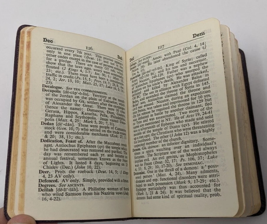 Collins Gem Dictionary Of The Bible by Rev. James L. Dow, M.A. Collins London and Glasgow Copyright 1964 Pocket Sized Mini Paperback Printed in Great Britain The body of the book was inserted upside down in the cover. The foredges of the book are yellowed Please see pictures as they are part of the description. JJ