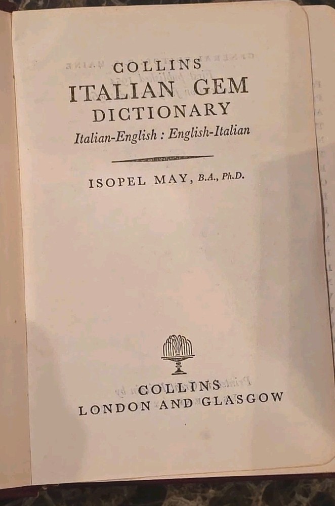 The product is a vintage Italian Gem Dictionary by Isopel May, published by Collins in 1956. This leather-bound bilingual dictionary contains 676 pages and is a valuable resource for language study and reference. With a focus on Italian and English, this mini collection offers a comprehensive guide to the Italian language for learners and enthusiasts alike.