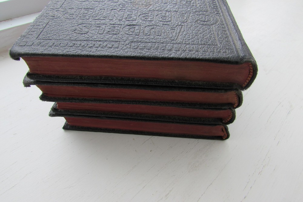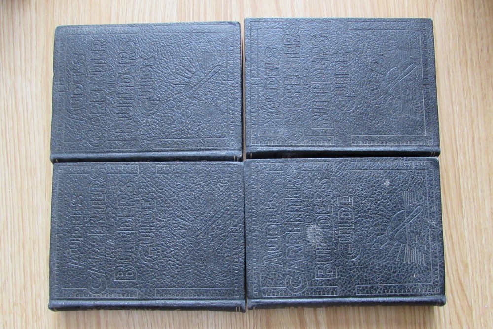 The product is a complete set of four Audels Carpenters and Builders Guide books from 1951. The books are authored by Frank D. Graham and Thomas J. Emery, published by Theo. Audel & Co., and written in English. The set covers topics related to builders, contractors, and trades, and is an original printing from 1951. The books are bound in leather and provide a comprehensive guide for individuals in the construction industry.