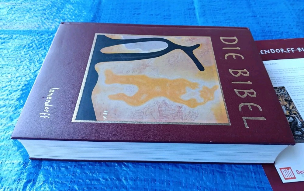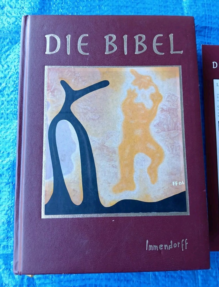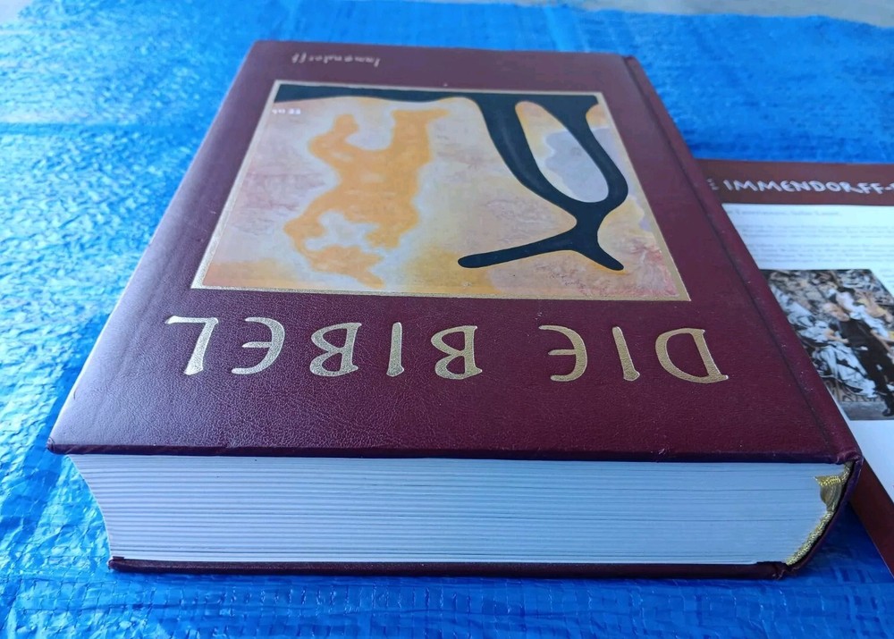 This German Bible featuring Jörg Immendorff’s artwork is a stunning collector’s piece—brand new with no marks or bent pages. The crisp condition and unique illustrations make it a must-have for art and scripture lovers alike. Light shelf wear adds character without distracting from its beauty. A true gem!