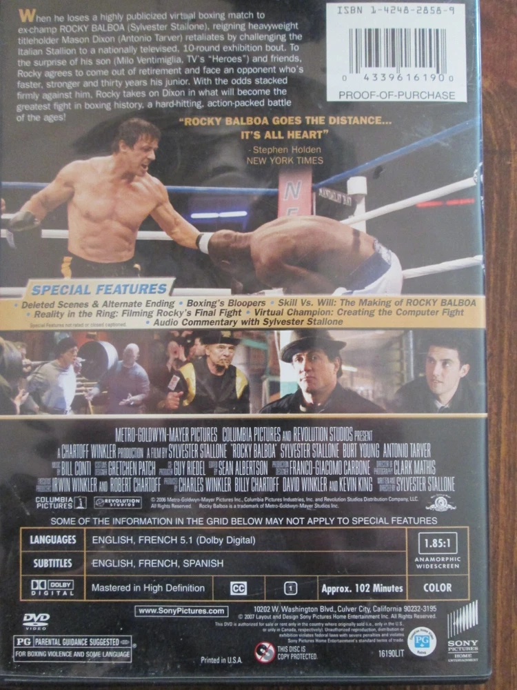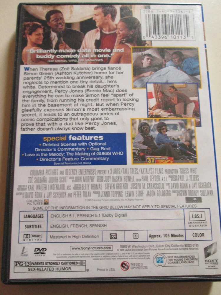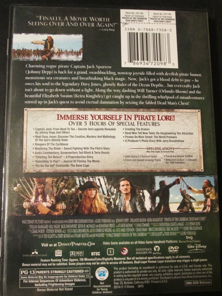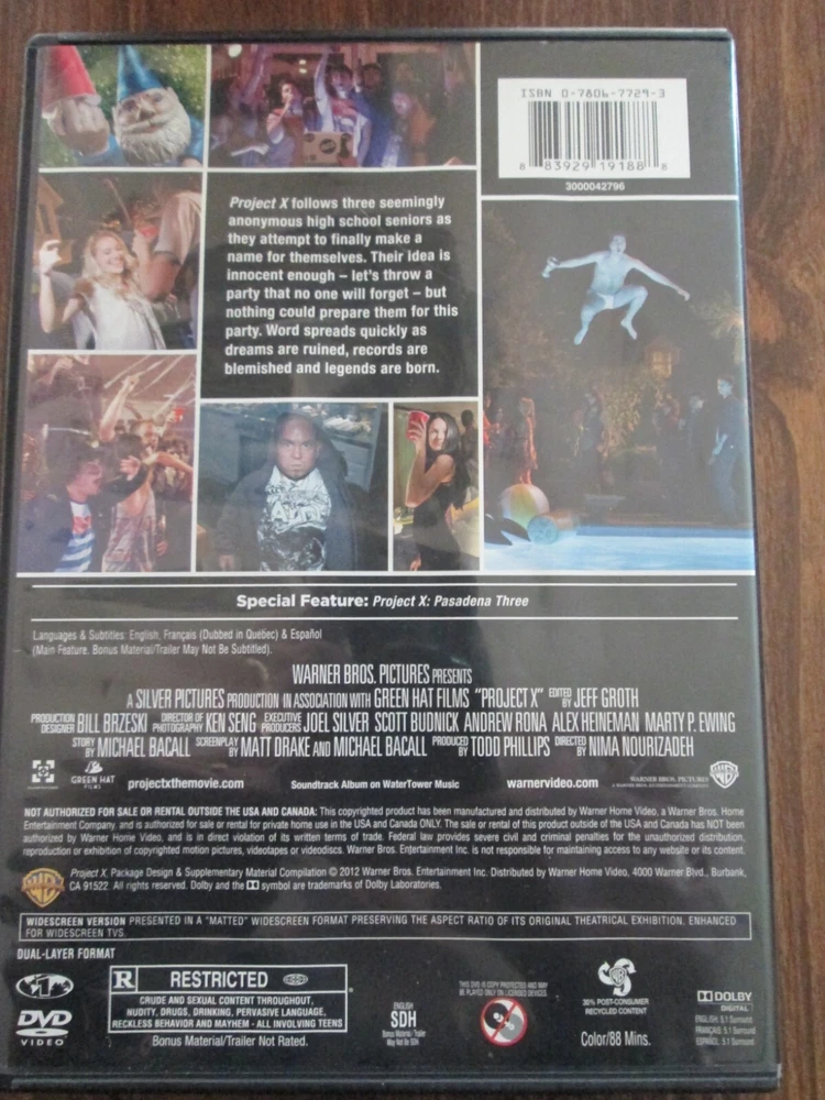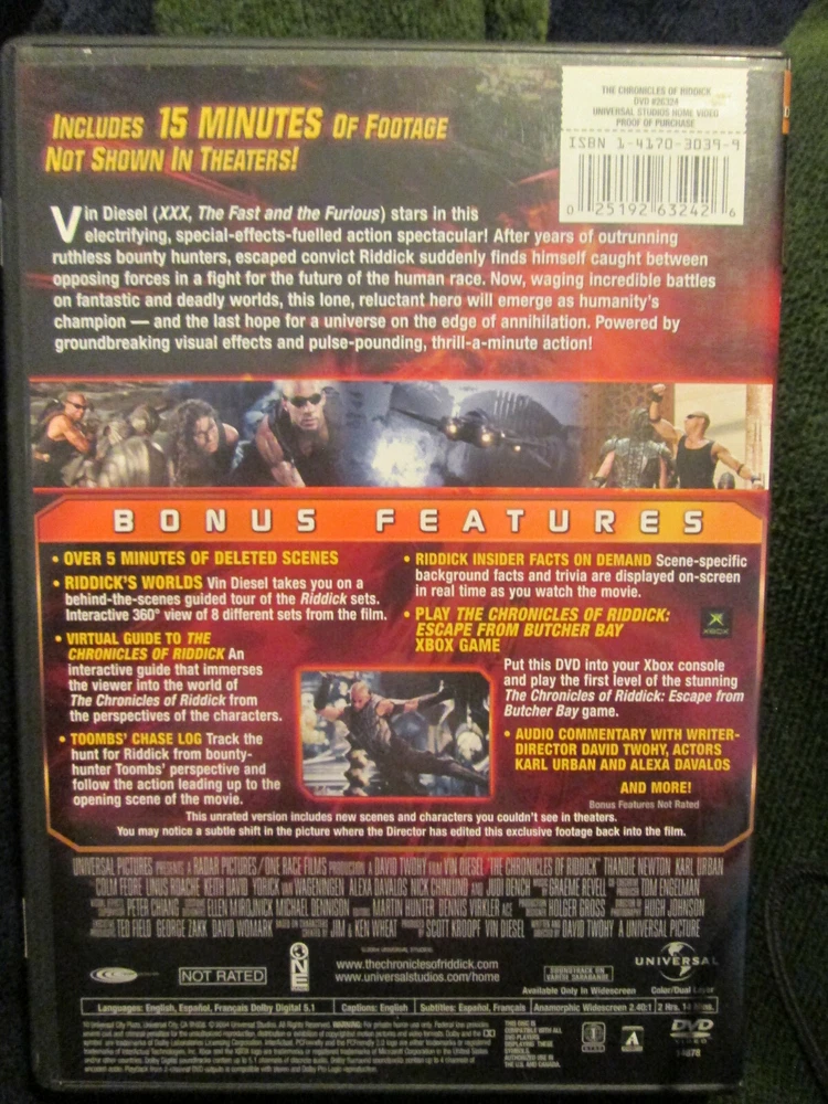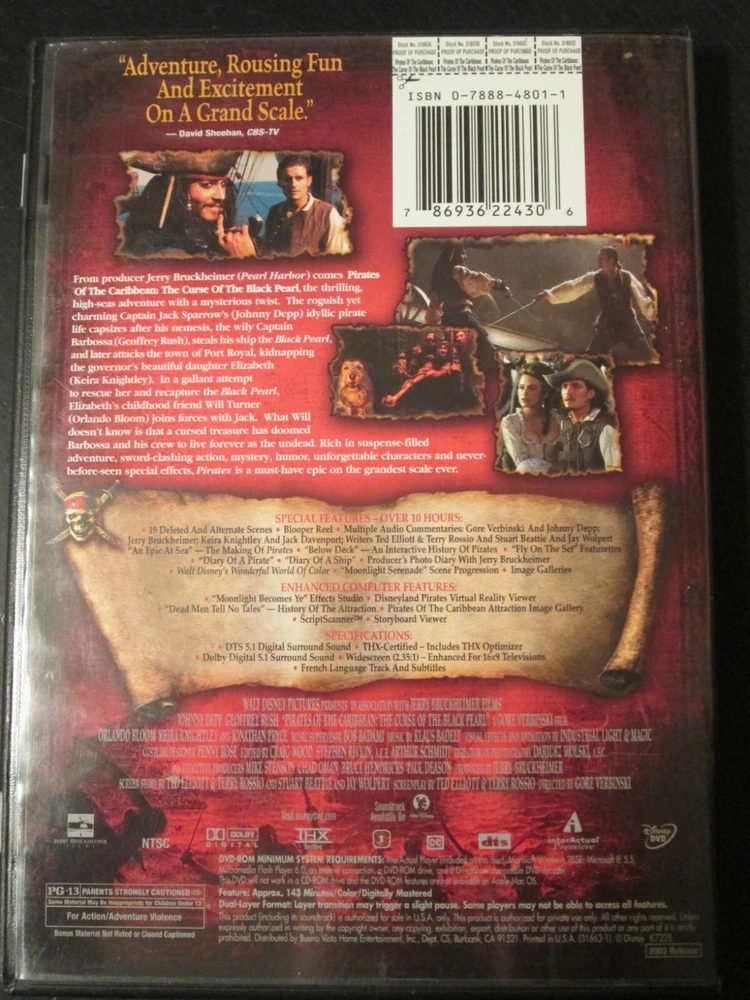 To purchase items just use the "TITLE" drop down menu. Drop down menu does not show full title and grade. Please see list below. SCROLL DOWN AND FIND THE ITEM, ALL ITEMS HAVE PHOTOS OF FRONT AND BACK CHOOSE THE DISC AND PLACE IT IN YOUR CART GO BACK AND REPEAT THE PROCESS UNTIL YOU ARE READY TO PAY. DISCOUNT IS APPLIED AUTOMATICALLY, see below More titles are added occasionally, so please add us to your watch-list Please see my other listings for more available items. Buyer pays $4.00 towards U.S. shipping for Media Mail for the first DISC and 50 cents for each additional . Or choose First Class for $4.75 for the first DISC plus $1.00 for each additional . All items are shipped in sturdy packaging. NM - Disc is spotless or may have 1 small flaw, most NM are spotless NM- - Disc has more flaws than NM but are small VG+ - Disc has more marks than NM- but still plays great VG - Disc has some light scratches or other marks but still plays as well as NM ALL DISCS COME WITH THE ORIGINAL CASE. NM and NM- cases are clean with maybe some minor flaws. VG and VG+ cases may have some scuffs but NO cracks or breaks. A WALK ON THE MOON - WIDESCREEN - VG+, ADVENTURES OF ERROL FLYNN - FULL SCREEN - VG, America's Sweethearts - NM, America's Sweethearts - NEW sealed, America's Sweethearts - NM-, BLACK NARCISSUS - FULL SCREEN - NM, BLUE'S BIG BAND - BLUE'S CLUES - VG-, BOB HOPE - ROAD TO BALI, FAVORITE BRUNETTE - NM, BORAT - RUSSIAN LANG. - WIDESCREEN - VG, BRATZ THE MOVIE - FULL SCREEN - VG+, Brothers and Champions Steelers - NEW sealed, BUCK - WIDESCREEN - NM, CERES CELESTIAL LEGEND DESTINY EP. 1 2 3 - NM, CERES CELESTIAL LEGEND PAST UNFOUND EP. 4 5 6- NM, CHRONICLES OF RIDDICK - WIDE SCREEN - NM, COWGIRL DORA - DORA THE EXPLORER - NM, CRONICAS - ENG AND SPANISH SUB TITLES - NM-, CROUCHING TIGER HIDDEN DRAGON - WIDE SCREEN - NM, DANTE'S COVE 2nd SEASON - 2 DISC - NM, DANTE'S PEAK - WIDESCREEN - NM, DESPICABLE ME 3 - WIDESCREEN - NM-, DOMINO - WIDESCREEN - NM, DVD BIBLE NEW TESTAMENT VOL 8 DEATH & SALV- NEW, EARWIG AND THE WITCH - WIDESCREEN - NM, 11:14 - WIDESCREEN - NM, Esra Flowne Episodes 21-23 - LIGHT AND SHADOW - NM, ON THE EDGE - ADV IN YOSEMITE NATIONAL PARK - NM, FINDING NEMO - FULL AND WIDESCREEN - VG, FINDING NEMO - FULL AND WIDESCREEN - NM, FIRST STRIKE - JACKIE CHAN - NM-, CASE SHOWS WEAR, FLAGS OF OUR FATHERS - WIDESCREEN - NM, GANGSTER SQUAD - WIDESCREEN - NM, EX-RENTAL, GLADIATOR - WIDESCREEN 2 DISC - NM, GODZILLA - WIDESCREEN, REGION 1 & 4 - NM, ENG FR S, GOOD LUCK CHUCK - VG+, GORILLA WARFARE - OLDE ENGLISH - VG, GRAN TORINO - BLU-RAY - NM, GUESS WHO - WIDESCREEN - VG+, THE GUYS - FULL LENGTH SCREENING COPY - NM, HIP HOP ABS - BEACHBODY - NM, I AM LEGEND - 2 DISC SPECIAL EDITION - NM, JUST FRIENDS - WIDESCREEN - NM, KEEPING THE FAITH - WIDESCREEN - VG, KNIGHT HUNTERS DEAD RINGER - EPISODES 1-5 - NM, LEGENDARY - BLURAY - NEW SEALED, MAGIC IN THE MOONLIGHT - WIDESCREEN - NM, MEET PRINCE CHARMING - FULL SCREEN - NM-, MILES BETWEEN US - WIDESCREEN - NEW, NAKED BROTHERS BAND - FULL SCREEN - NM-, PEEP WORLD - BLU-RAY - NM, CURSE OF THE BLACK PEARL - NM PIRATES OF CARIBBEAN, CURSE OF THE BLACK PEARL - VG PIRATES OF CARIBBEAN, DEAD MAN'S CHEST - NM PIRATES OF THE CARIBBEAN, DEAD MAN'S CHEST 2 DISC SPECIAL - NM- NM, PIXIE HOLLOW BAKE OFF - NM, PROJECT X - WIDESCREEN - NM, RENEGADE MALE FLIGHT ATTENDANT - FULL SCREEN - NM, THE RING - FULL FRAME - NM, THE RING - WIDESCREEN - NEW, ROCKY BALBOA - WIDESCREEN - VG, RUMBLE IN THE BRONX - WIDE AND FULL SCREEN - NM, THE RUNDOWN - WIDESCREEN - NM, Rush to War:Between Iraq and a Hard Place, SCOOBY DOO SPACE APE AT THE CAPE - VG-, SCOODY DOO MERRY SCARY HOLIDAY - VG+, SCOOBY DOO MYSTERY INC - S2 PART 1 - NM-, SECRET AT ARROW LAKE - NM, SHAZAM - BLU-RAY - NM, SIX FEET UNDER - SEA. 4 VOL. 3 EP. 6-8 - VG+, SPACE CAMP - WIDESCREEN - NM, Spider-Man 2 (SuperBit Collection) NM, SUPER - WIDE SCREEN - VG-, TARZAN - ANIMATED WS - VG, 300 - 2 DISC SPECIAL EDITION - NM, 300 - WIDESCREEN - NM, TOMBSTONE - WIDESCREEN - NM, TOMORROW NEVER DIES - WIDESCREEN SP ED - VG+, 21 JUMP STREET - BEST OF - 6 EPISODES - NEW, 2 BROTHERS AND A BRIDE - WIDESCREEN - NM, VENICE UNDERGROUND - WIDESCREEN - NM-, WANTED - FULL SCREEN - NM, WANTED - WIDESCREEN - NM, WANTED - WIDESCREEN 2 DISC - NM, WAR HORSE - NM, WELCOME TO SWEDEN - COMPLETE 1st SEASON - NM -, WHY STOP NOW - WIDESCREEN BLU-RAY - NM, WILDTHINGS - FULL SCREEN - NM, WILDTHINGS - FULL AND WIDESCREEN - NM-, WITHOUT A PADDLE - FULL SCREEN - VG+, YOJIMBO VOL. 2 SMALL TOWN SECRETS - ENG ST - NM, ZACK AND MIRI - WIDESCREEN 2 DISC - NM Pricing