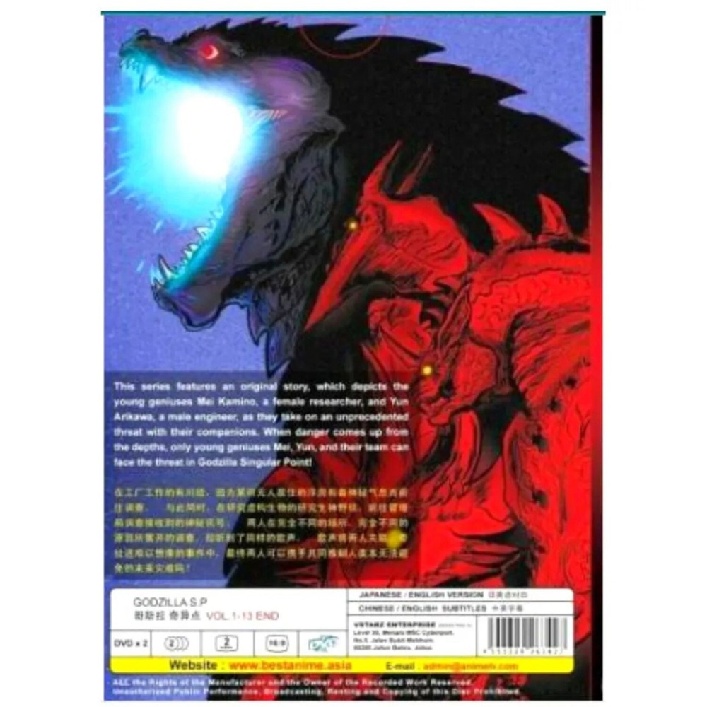 amazon listing Give us a call Send us a message amazon listing amazon listing DVD Anime Godzilla S.P /Singular Point (Vol.1-13 End) English Dubbed All Region Free Shipping Product Description: Language : English / Japanese Subtitle : Chinese / English Format : DVD / 16:9 No of episode : Vol.1-13 End No of Disc : 2 Discs Region Code: All Region/Region FREE "0" (Able to play on any DVD Players throughout the World) Condition: Authentic, Brand NEW, Original Factory Sealed. Synopsis: This series features an original story, which depicts the young geniuses Mei Kamino, a female researcher, and Yun Arikawa, a male engineer, as they take on an unprecedented threat with their companions. When danger comes up from the depths, only young geniuses Mei, Yun, and their team can face the threat in Godzilla Singular Point! Payment Currently,we accept payment through eBay-managed payment. Shipping FREE SHIPPING Worldwide. The products will be shipped via USPS from California, USA. Handling time is 1-3 working days. Your goods will be shipped with a valid tracking number. All products are packed, and layered with bubble wrap to reduce damages during shipment delivery. Estimate delivery is between 3 to 6 business days. Returns If you have any problem with the order,do contact us via eBay message.We are glad to assist you and solve the problem as soon as possible. Items can be returned within 30 days, provided items are in good condition. Other Note: Import duties,taxes and additional charges are not included in the item price or shipping charges.Please be aware this custom import duties and taxes are buyer's responsibility. Variations in screen monitors and lighting conditions may cause the actual color of the item to slightly differ from what is seen in the picture. Rest assured, we guarantee that the style remains consistent with what is depicted in the images.