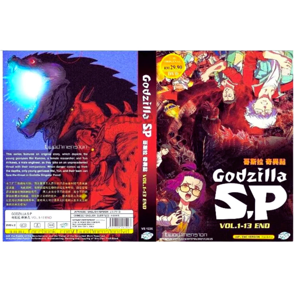 DVD Anime Godzilla S.P: Singular Point (VOL.1 - 13 End) with English dubbed This DVD set features the complete Godzilla S.P series, from Volume 1 to Volume 13, with an English dubbed option. The set includes all DVDs in the DVD: 0/All (Region Free/Worldwide) format, making it accessible to viewers anywhere in the world. The language options include English and Japanese, with Chinese subtitles available for those who need them. The series is rated NR and falls under the Animation & Anime genre. The Godzilla S.P series is a must-have for any anime enthusiast, with its unique storyline and stunning visuals. This DVD set offers a great opportunity for fans to own the complete series and enjoy the English dubbed option. The set is perfect for those who want to delve into the world of Godzilla and experience the thrilling adventures of the iconic monster. Features and Synopsis Features Complete TV Series Volume 1-13 End *NEW! English Audio Dubbed Version ALL Region / Region Free Free International Shipping Optional: English Subtitle Condition: Authentic Brand NEW, Original Factory Sealed. Episode: Vol. 1-13 End No. of Discs: DVD x 2pcs Region Code: ALL Region, Region FREE "0" (Able to play on DVD Players throughout the World) Audio Language: English / Japanese Subtitles: English / Chinese Synopsis This series features an original story which depices the young geniuses Mei Kamino, a female researcher and Yun Arikawa, a male engineer, as they take on an unprecedented throat with their companions. When danger comes up from the depths, only young geniuses Mei, Yun and their team can face the threat in Godzilla Singular Point! Contact us We can be contacted at any time through eBay messages if you have any questions, comments or product requests. We will respond to you within 24 hours and do our best to help you out! We encourage our customers to contact us with any questions or concerns! We'd like to be sure you are completely satisfied with your purchase. Payment Currently we accept payment from eBay managed payment. Duties and Taxes Import duties, taxes and additional charges are not included in the item price or shipping charges. Please be aware this custom import duties and taxes are buyer's responsibility. Others For return, items must be returned in the same condition in order to receive a full refund. New items that have been opened can no longer be sold as a new and therefore will not be given a full refund amount. @Abundance _Avenue
