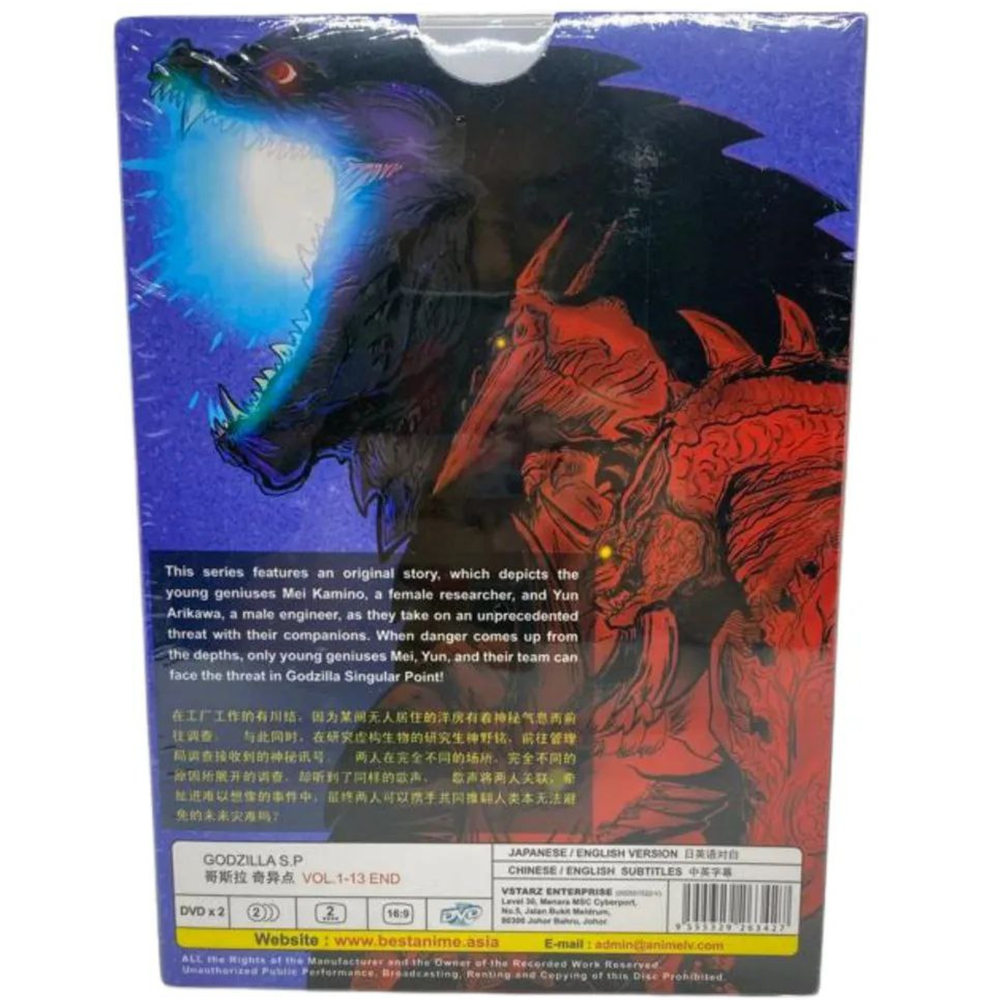 DVD Godzilla S.P Singular Point Vol. 1-13 End Anime English Dubbed Free Shipping From USA Payment We only accept payment through eBay-managed payment. Shipping We ship from USA using USPS First Class. Our handling time is 1-3 business working days. Estimate delivery time in US region is between 2 to 5 business working days. Your goods will be shipped with valid tracking number. All products are packed, layered with bubble wrap to reduce damages during shipment and delivery. Contact If you have any problem with the order, do contact us via eBay message. We are glad to assist you and solve the problem as soon as possible. Items can be returned within 30 days in a good condition . Features and further details This DVD box set features the complete Godzilla S.P TV series, with 13 volumes included. The anime is in English and Japanese, with English and Chinese subtitles available. The video format is NTSC, with an aspect ratio of 16:9. The DVD is region-free, suitable for worldwide viewing. The box set comes in a tall/DVD case, and is an edition that includes all the volumes of the series. The Godzilla S.P franchise is known for its action-packed and sci-fi stories, and this box set is perfect for fans of animation and anime. The DVD is manufactured in Malaysia, and is a must-have for collectors of DVDs and Blu-ray discs. Title Name – Godzilla S.P (Singular Point). Volume – 1-13 End. Number of Discs – DVD x 2pcs. Audio Languages – English / Japanese. Subtitles – English / Chinese. Format – DVD, All Region Code (16:9) . Summary : This series features an original story, which depicts the young geniuses Mei Kamino, a female researcher, and Yun Arikawa, a male engineer, as they take on an unprecedented threat with their companions. When danger comes up from the depths, only young geniuses Mei, Yun, and their team can face the threat in Godzilla Singular Point!