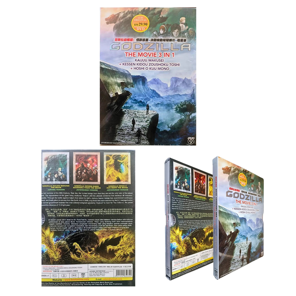 Experience the epic battles and awe-inspiring adventures of "Godzilla: The Movie 3in1 Kaijuu Wakusei+Kessen Kidou+Hoshi O Kuu Mono" all in one convenient DVD. This collectible box set includes three distinct films, each offering a unique glimpse into the world of the legendary monster. With a mix of action, adventure, and sci-fi elements, these movies are a must-have for fans of the genre. The DVD is presented in a widescreen 16:9 aspect ratio and supports both English and Japanese audio tracks, with subtitles available in English, Chinese, and Malay. Enjoy the flexibility of having three movies on one disc, all encoded as DVD: 0/All (Region Free/Worldwide), making it accessible to fans across the globe. Title : DVD Godzilla The Movie 3in1 Kaijuu Wakusei+Kessen Kidou+Hoshi O Kuu Mono Weight : 163g Godzilla The Movie 3 in 1: Kaijuu Wakusei / Kessen Kidou Zoushoku Toshi / Hoshi wo Kuu Mono - *English Dubbed* Product Description: Number of Disc. : 1 DVD Episodes : 3 Movies Audio (Dialogue): English / Japanese Subtitled : English / Chinese / Malay DVD Region Code : Region Free, All (NTSC