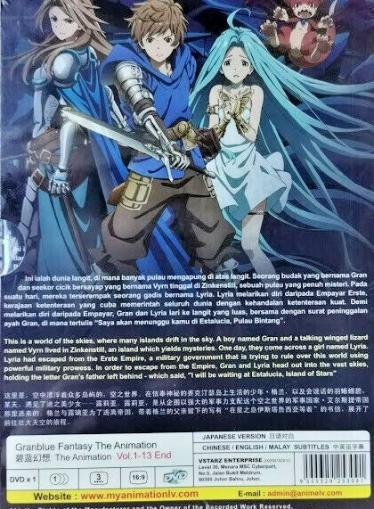 Granblue Fantasy The Animation Vol. 1-13 End Audio : Japanese Subtitle : English / Chinese / Malay Region Code : All Region Number of Disc : 1 Shipping & Handling - FREE POSTAGE with Tracking Number provided - Ship to WORLDWIDE except Canada , North Korea & Israel - Items will be ship by Registered International Airmail with tracking number - Items will be ship out within 1 business day (Monday to Thursday) after payment received - Items will ship to the address as per eBay's check-out . - All items will be securely packaged. Payment - I accept PAYPAL only. - Please don't hesitate to contact us if you have any questions. Return Policy - Only DEFECTIVE item will be replace promptly. - Buyer's pay for the return shipping cost.