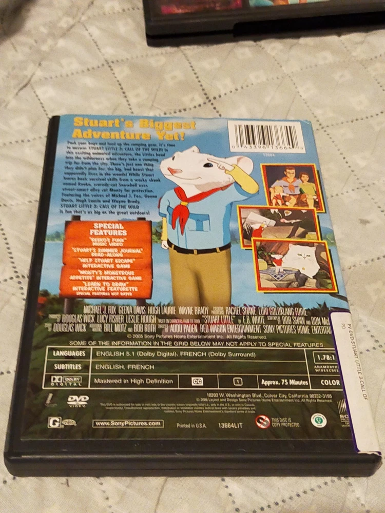 DVD MOVIES ( PICK AND CHOOSE) $ 1.06 DVD MOVIES SALE ( PICK AND CHOOSE)... MOVIE TITLE - ACTOR Choose an option Agent Cody Banks - Frankie Muniz, Hilary Duff August Rush- Freddie Highmore,Keri Russell Babel - Brad Pitt,Cate Blanchett Baby Mama-Tina Fey,Amy Poehler Battle: Los Angeles - Aaron Eckhart,M.Rodriguez Battlestar Galactica-Richard Hatch,Dirk Benedict Beginners - Ewan McGregor,Christopher Plummer Bigfish -Ewan McGregor,Albert Finney,Billy Crudup Brides Maids -Kristen Wiig,Maya Rudolph,Rose Byrne Bride Wars - Kate Hudson, Anne Hathaway Bridget Jones-Renee Zellweger,Colin Firth,Hugh Gr Ceremony -Michael Angarano,Uma Thurman Champions - Dicky Cheung,Xie Miao,Yu Rongguang Chasing Liberty - Mandy Moore,Matthew Goode Cheaper by the Dozen-Steve Martin,Bonnie Hunt Eight Below - Paul Walker Fever Pitch - Jimmy Fallon,Drew Barrymore Flags of Our Fathers-Clint Eastwood Firewall - Harrison Ford, Paul Bettany Godzilla - The Complete Animated Series Great Battles of the Pacific (Reader's Digest) Gulliver's Travel -Jack Black Hannah Montana The Movie-Miley Cyrus Harry Potter and the Half-Blood Prince-D.Radcliffe Hellboy -Ron Perlman, Selma Blair Heroes(Season 1) Honey-Jessica Alba,Mekhi Phifer,Joy Bryant How to Deal -Mandy Moore,Allison Janney Igor Inglourious Basterds-Brad Pitt,Christopher Waltz InkHeart -Brendan Fraser,Paul Bettany,Helen Mirren IP Man - Donnie Yen I-Spy - Eddie Murphy, Owen Wilson Kick-Ass 2 - Aaron Taylor Johnson,C.G. Moretz Legends of the Fall - Brad Pitt,Anthony Hopkins Life of Pi - Suraj Sharma Madagascar include The Penguins in Christmas Caper Matrix Reloaded-Keanu Reeves Miss Potter - Renee Zellweger, Ewan McGregor Moulin Rouge - Nicole Kidman, Ewan McGregor Mr. Popper's Penguins - Jim Carrey Must Love Dogs-Diane Lane,John Cusack National Treasure - Nicolas Cage, National Velvet - Mickey Rooney, Elizabeth Taylor New in Town - Renee Zellweger, Harry Connick,Jr. Noel - Penelope Cruz,Susan Sarandon, Paul Walker No Reservations-Catherine Zeta-Jones, Aaron Eckhar O Brother,Where Art Thou?-George Clooney, Old Dogs-John Travolta,Robin Williams Outlander(Season Two) Outlander(Season Three) Outlander (Season Four) Outlander (Season Six) Out of Time - Denzel Washington Raise Your Voice-Hilary Duff,Rita Wilson Road to Hollywood & Sound of Laughter- Bing Crosby Rock of Ages-Julianne Hough,Diego Boneta Shanghai Nights - Jackie Chan, Owen Wilson Sharpay's Fabulous Adventure-Ashley Tisdale Silent Mountain-William Moseley,Claudia Cardinale Signs -M. Night Shyamalan - Mel Gibson Skyline-Eric Balfour,Scottie Thompson Songcatcher-Janet McTeer,Aidan Quinn Soul Surfer - Annasophia Robb, Helen Hun Star Wars The Force Awakens-Harrison Ford State of Play - Russel Crowe,Ben Affleck,R.McAdams Stuart Little 3-Call of the Wind Sucker Punch - Emily Browning,Abbie Cornish Takers - Matt Dillon,Paul Walker,Idris Elba Teacher's Pet (Disney) 10,000 BC-Steven Strait,Camilla Belle The Adventures of Sharkboy & Lavagirl -T. Lautner The Double - Richard Gere ,Topher Grace The Final Stand(Inspired by Real WWII Events) The 40-Year-Old Virgin - Steve Carell,C. Keener The Girl with the Dragon Tatoo-Daneil Craig The Greatest Game Ever Played-Shia Labeouf The Hangover - B. Cooper, E.Helms,Z.Galifianakis The Hunger Games-Catching Fires & The Hunger Games The Land Before Time -Invasion of the Tinysauruses The Last Airbender- Noah Ringer,Nicola Peltz The Long Road Home(WWII)-David Aitchison The Mission-Robert De Niro,Jeremy Irons The Prince & Me:A Royal Honeymoon-K. Heskin,C.Geer The Prince of Tides-Barbra Streisand,Nick Nolte The Resistance-Peng Zhang Li,Hu ling Meng,hU sANG The Shaggy Dog -Tim Allen The Simpsons Movie The Social Network-Jesse Eisenberg,Andrew Garfield The Stepford Wives -N.Kidman,M.Broderick,B.Midler The Switch -Jennifer Aniston,Jason Bateman The Twilight Saga-Breaking Dawn 1- K.Stewart 30 Minutes or Less-J.Eisenberg,D. McBride,A.Ansari Thor -Chris Hemsworth,Natalie Portman Transformers Revenge of the Fallen-Shia LaBeouf Transformers(Complete First Season) True Blood(The Complete First Season)-Anna Paquin Triple Dog-B.Robertson,S. Taylor Compton,A. Fast Twilight-Kristen Stewart,Robert Pattinson Two Weeks Notice- Sandra Bullock ,Hugh Grant Wedding Crashers-O.Wilson,V.Vaughn,C.Walken Whale Rider-Keisha Castle Hughes A Sound of Thunder-Edward Burns Austin Powers GoldMember- Mike Myers Sirens- Hugh Grant,Tara Fitzgerald Tales of Kamasutra The Perfumed Garden-A.Lindsey Hacksaw Ridge - Andrew Garfield King Arthur -K. Knightly,S.Skarsgard Kingdom of War Tales of Kamasutra Monsoon 2 -R. Tyson,M. Mccoy The Last Legion - C. Firth,B. Kingsley,A.Rai The New World - C. Farrell,C.Plummer,C.Bale Flower Bowl quantity Add To Cart Description Specifics Description DVD MOVIES SALE ( PICK AND CHOOSE) Specifics Actor Various Format Blu-ray Language English Movie/TV Title Various Type Movie