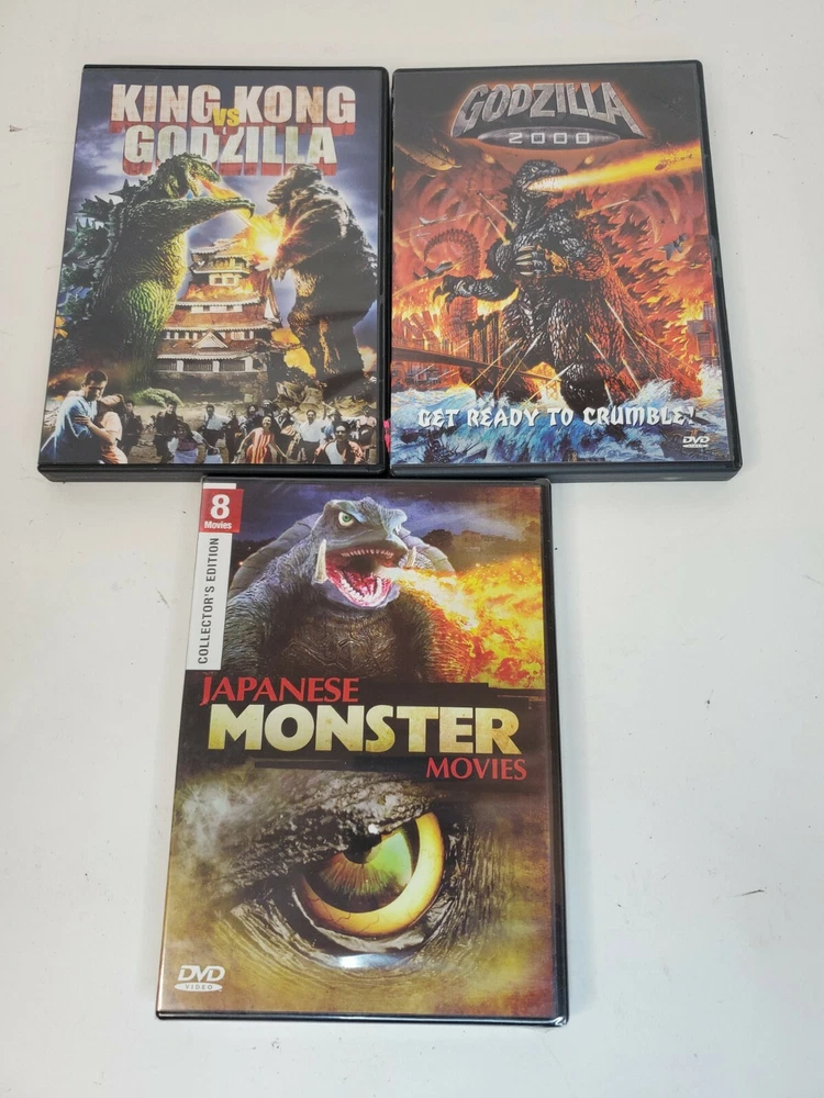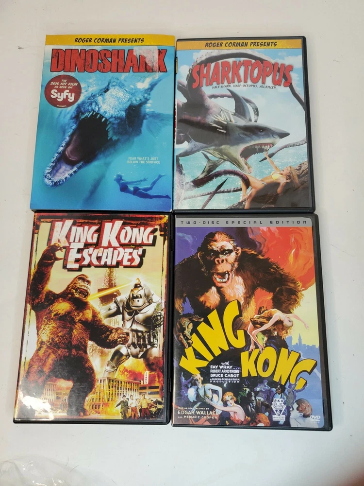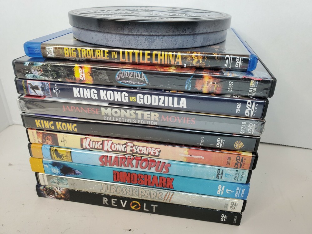 DVD Movie alot of 11 Monsters King Kong Godzilla Sharktopus Jurassic Park. 10 Dvds, 1 Bluray (Big Trouble In Little China) Japanese Monster Movies is still sealed All discs are in great condition, may contain minor scratches but plays with no issues. Please view pictures closely, what is shown is the exact item that will be shipped.