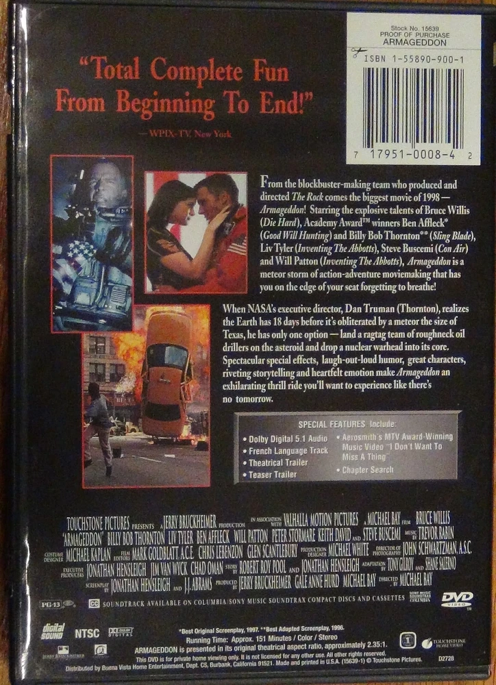 Pick a DVD from the list! All are from my private collection; most never played! Most include cover art, unless noted with an asterisk (*). PLEASE NOTE THAT THE DVD CASE IS NOT INCLUDED! THIS IS TO KEEP POSTAGE LOWER! Each disc is enclosed in a plastic or paper sleeve for scratch-proof protection and then shipped in a bubble mailer. CHOOSE 5 DVDs FOR $10!! (Each disc counts as 1 item.) Please request invoice after purchase; I will adjust. Shipping via media mail to anywhere in the continental USA - each additional purchase is $1 for additional shipping!. Thanks for looking, and GOOD LUCK!!