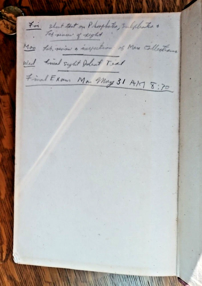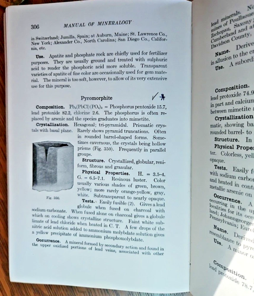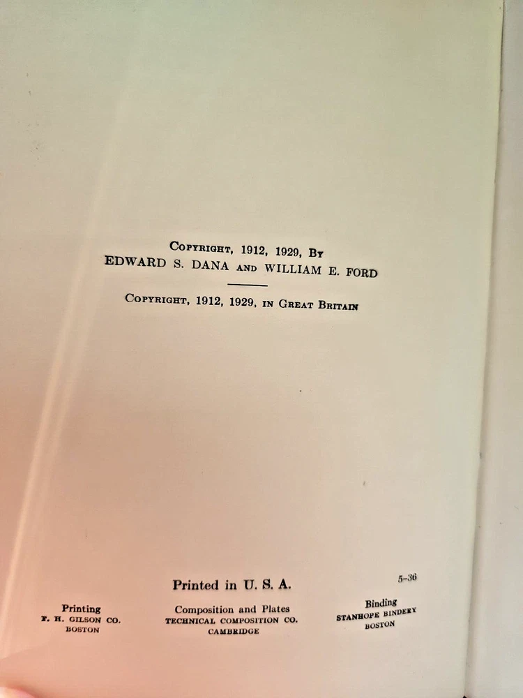 14th edition (1929) of this classic geology text. Beautiful red leather binding with light wear. Prior owner's writing in endpapers and some annotations in the text (see photos). Pages and binding intact and solid. 5 in x 7.5 in x 1.25 in. 1 lb 6 oz. 476 pages